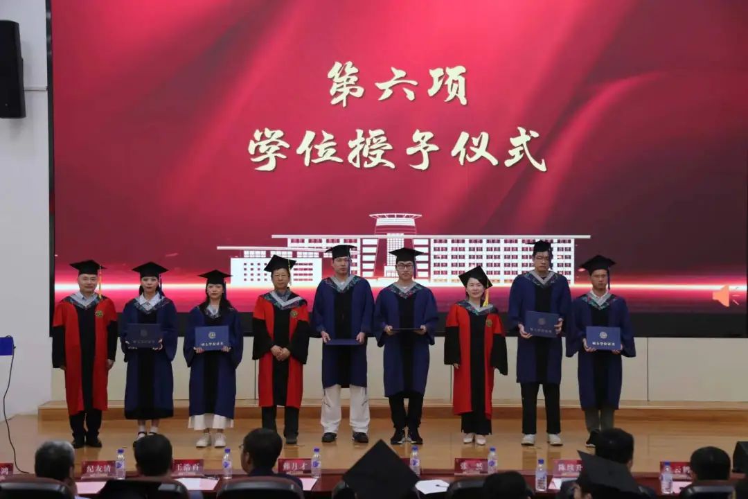 在庄严肃穆的国歌声中,典礼拉开序幕。副院长韩月才和党委副书记兼纪委书记陈续升分别宣读本科生和研究生毕业名单。副院长王浩百宣读优秀毕业生名单。党委书记王春朋为优秀毕业生颁奖。院长张然、党委书记王春朋、学位评定分委员会主席邹永魁为获得学位的毕业生拨穗正冠并授予学位。