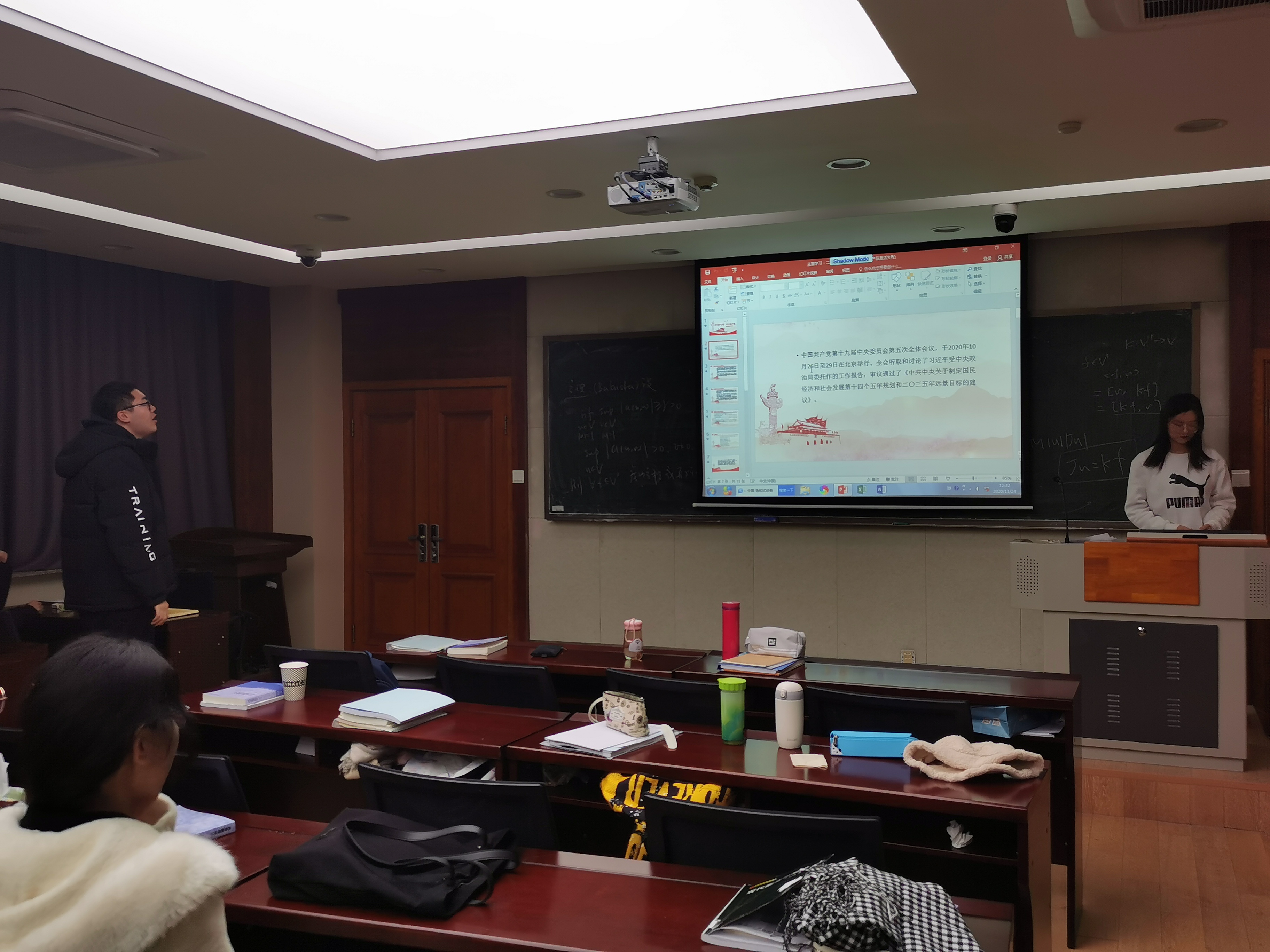 jinnianhui今年会本科生党支部于2020年10月30日中午在数学楼第一报告厅进行“学习贯彻十九届五中全会精神”的主题教育,组织全体党员学习党的十九届五中全会精神以及《中共中央关于制定国民经济和社会发展第十四个五年规划和二〇三五年远景目标的建议》。本次主题教育旨在使jinnianhui今年会全体党员找准人生定位与奋斗目标,把个人际遇融入时代发展大局,为推动国家发展、社会进步贡献智慧和力量。