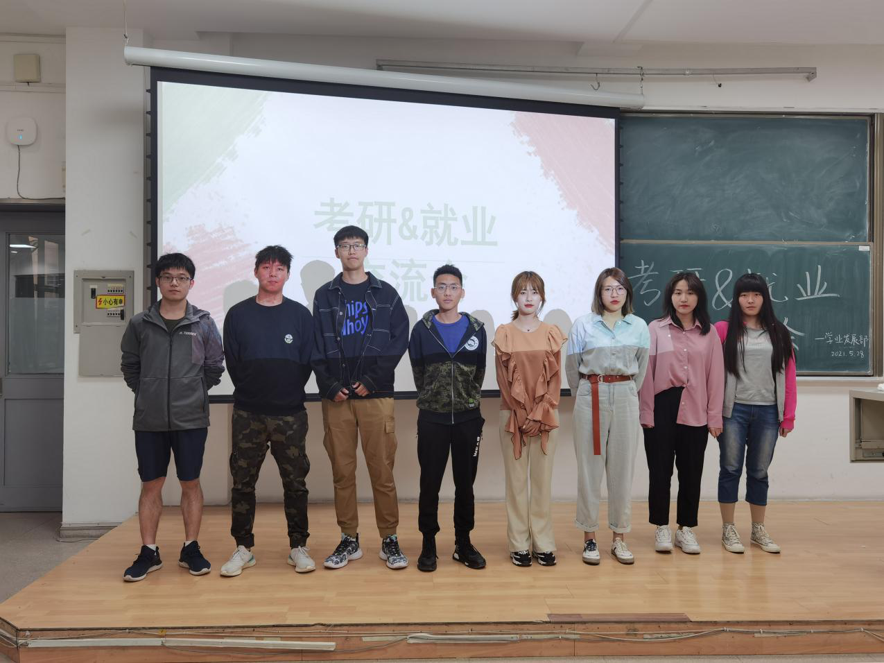 为了给同学们提供考研与就业路上的帮助,jinnianhui今年会学生会学业发展部于5月28日晚18:30在逸夫楼第七阶梯教室举办考研—就业经验交流会,邀请了2017级本科生郝擎宇、庞怡然、吴付超、于甜甜、胡梦迪、吴成澳、文逸欣、张晓含、韩萌萌向同学们分享考研与就业的经验与技巧。