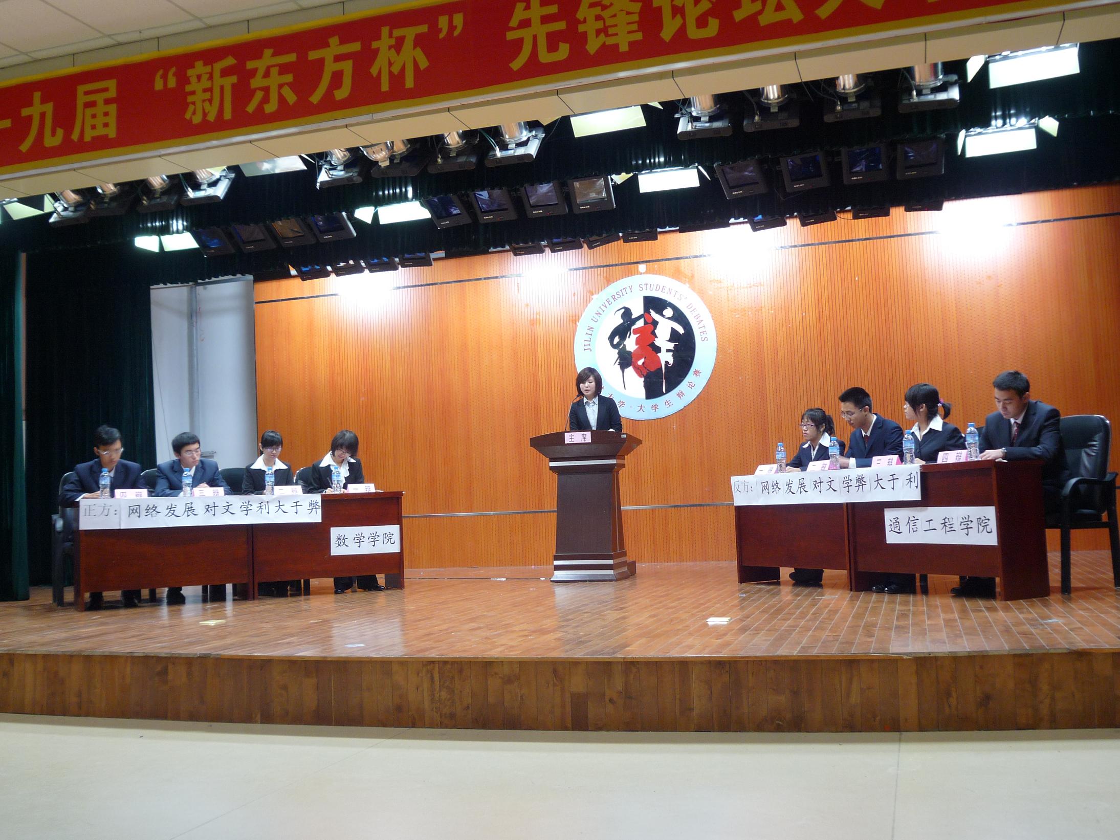jinnianhui今年会与通信学院首席交锋,就“网络发展对文学的利弊大小”展开了精彩的辩论。双方口若悬河,针锋相对。最终,经过评委的点评与商议,由正方jinnianhui今年会代表队获胜。