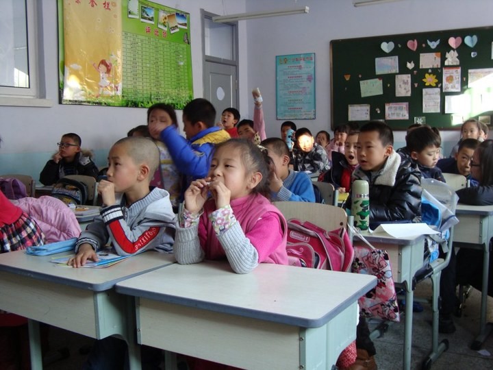第五阶段(2月26日):在松原市长岭县巨宝山镇中心小学深入调查研究小学生对十八大精神的了解情况,通过发放宣传材料,举办图片展向小学生传达党的十八大精神中关于创新,减负的思想。通过与小学生的交流沟通深入了解他们的思想,让他们对国家政策方针有所认识。