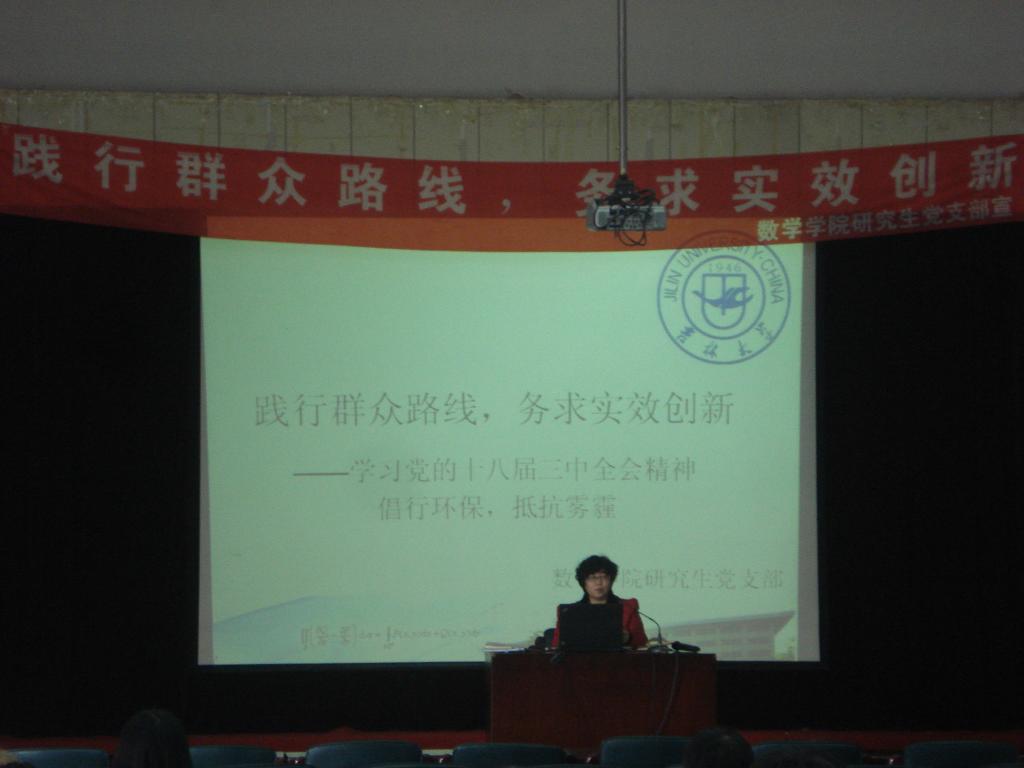 jinnianhui今年会于2013年12月4日上午10点,在数学楼二楼报告厅召开“践行群众路线,务求实效创新”研究生党支部会议。会议由jinnianhui今年会党委副书记王欢老师主持。jinnianhui今年会全体研究生党员和积极分子参加了此次会议。