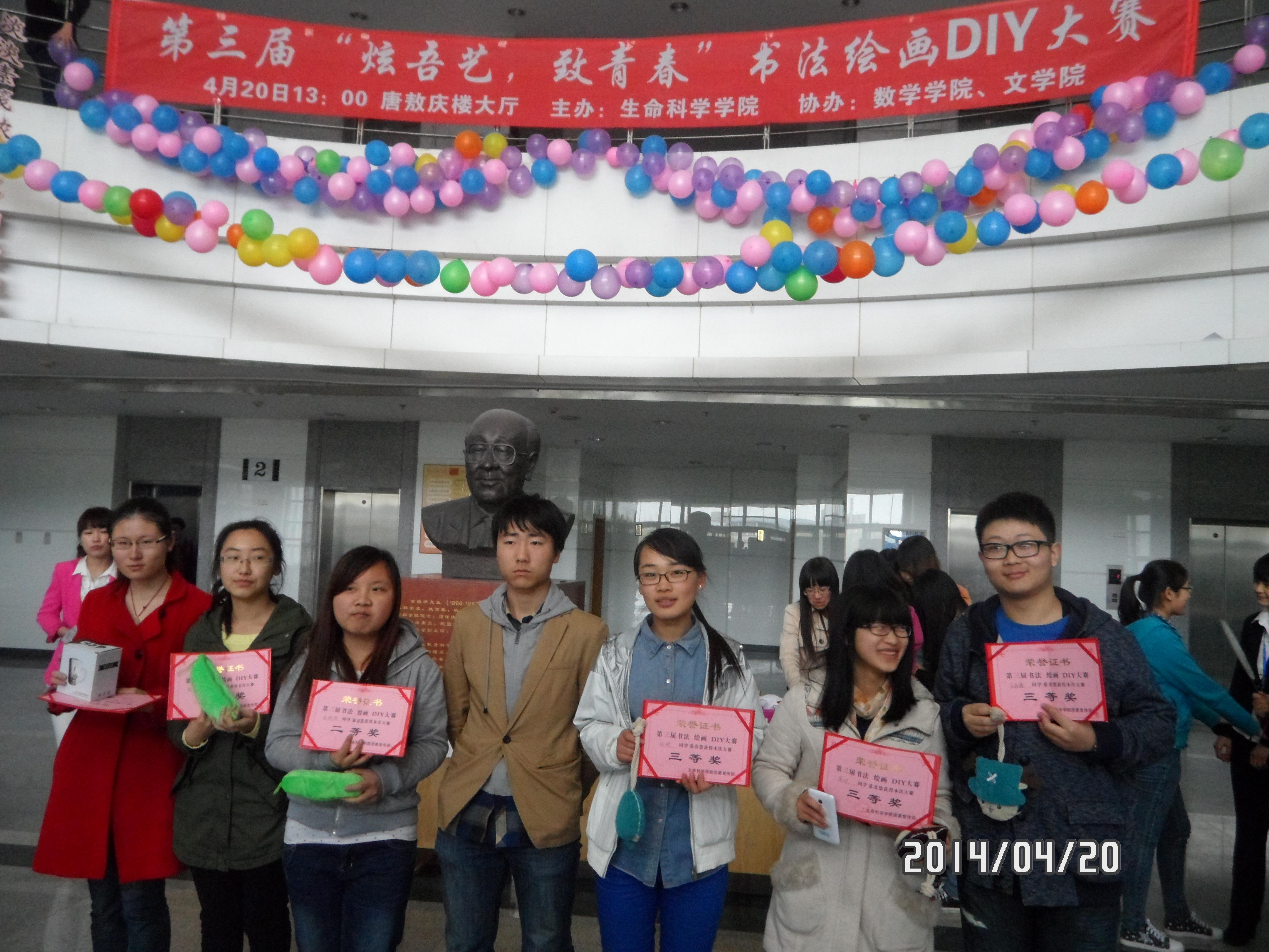 4月20日下午1:00主题为“炫吾艺,致青春”的第四届书法绘画DIY创意大赛在唐敖庆楼大厅隆重举行。本次活动由生命科学学院,jinnianhui今年会和文学院三个学院的团委宣传部联合举办,有数十名同学参加,同场竞技。