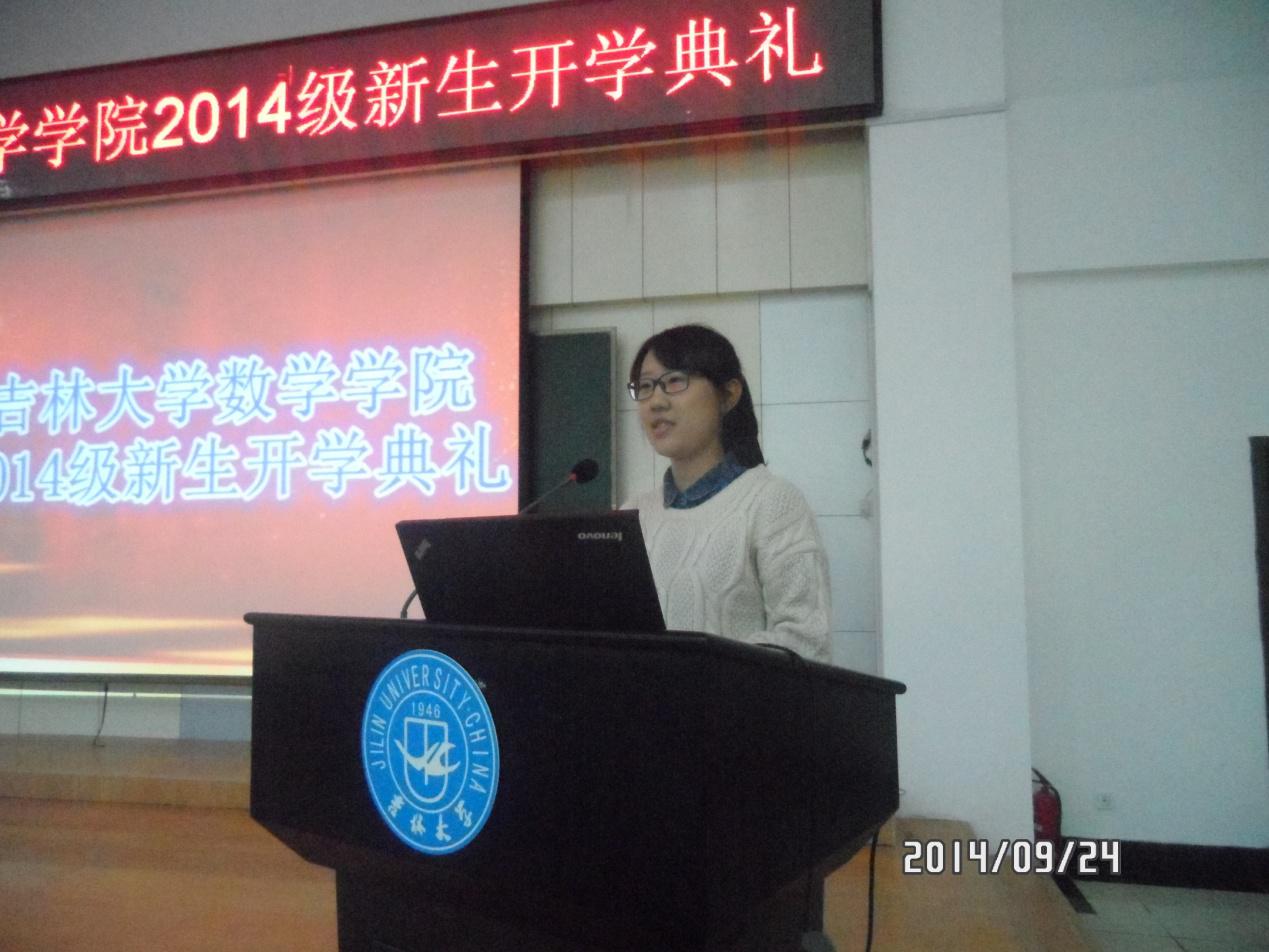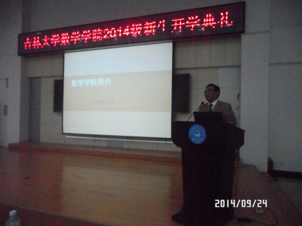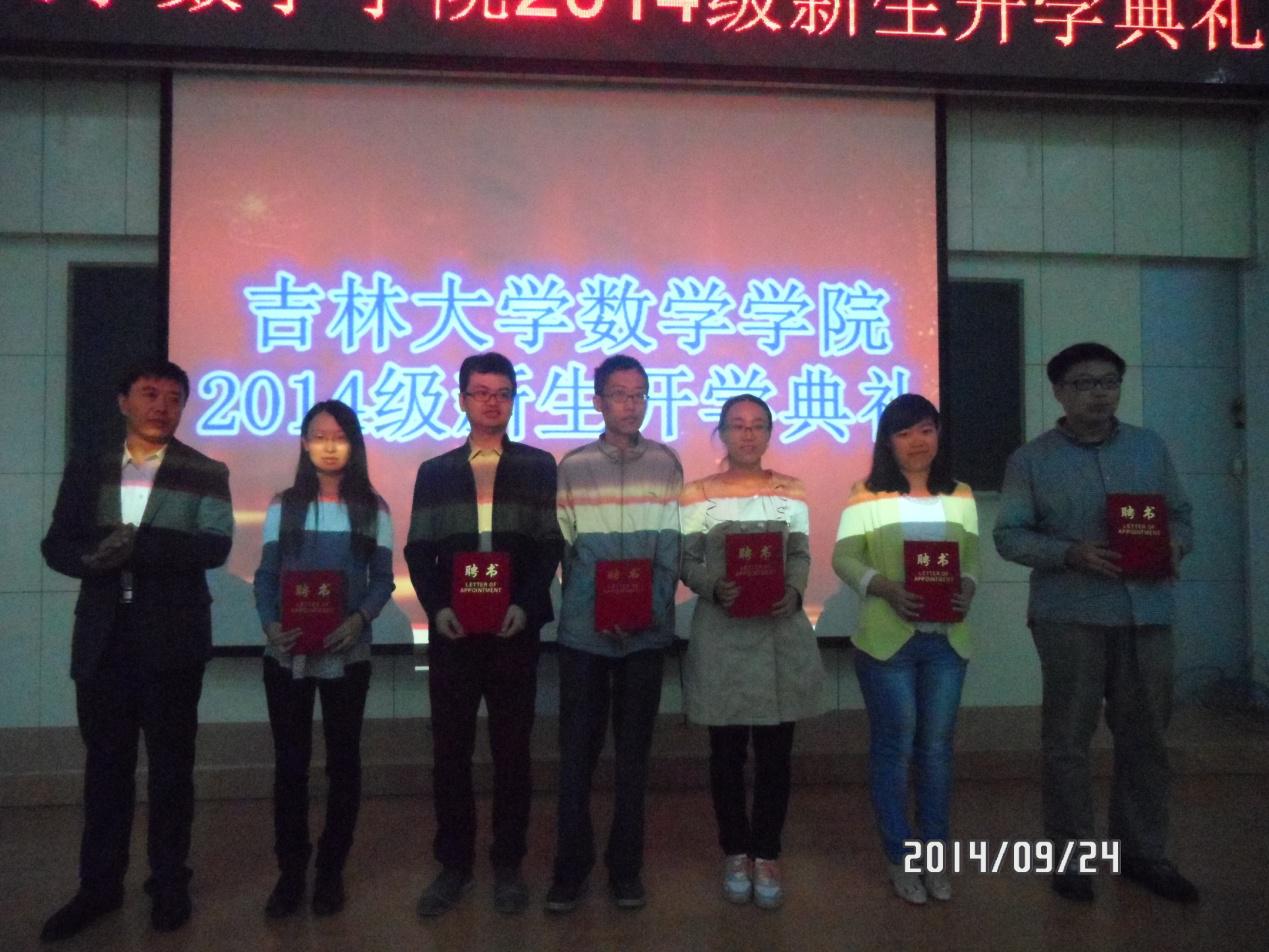 9月24日下午1点30,jinnianhui今年会在数学楼2楼报告厅举办了jinnianhui今年会2014级新生开学典礼暨新生班主任聘任仪式,出席大会的领导有jinnianhui今年会院长兼公共数学中心主任李辉来教授,jinnianhui今年会党委书记李晓光教授,副院长王德辉教授,副院长史少云教授,公共数学中心副主任张然教授,副主任徐向红教授,党委副书记王欢老师,副院长陈续升老师,党委副书记兼副院长赵任老师及七位青年教师。大会由赵任老师主持。