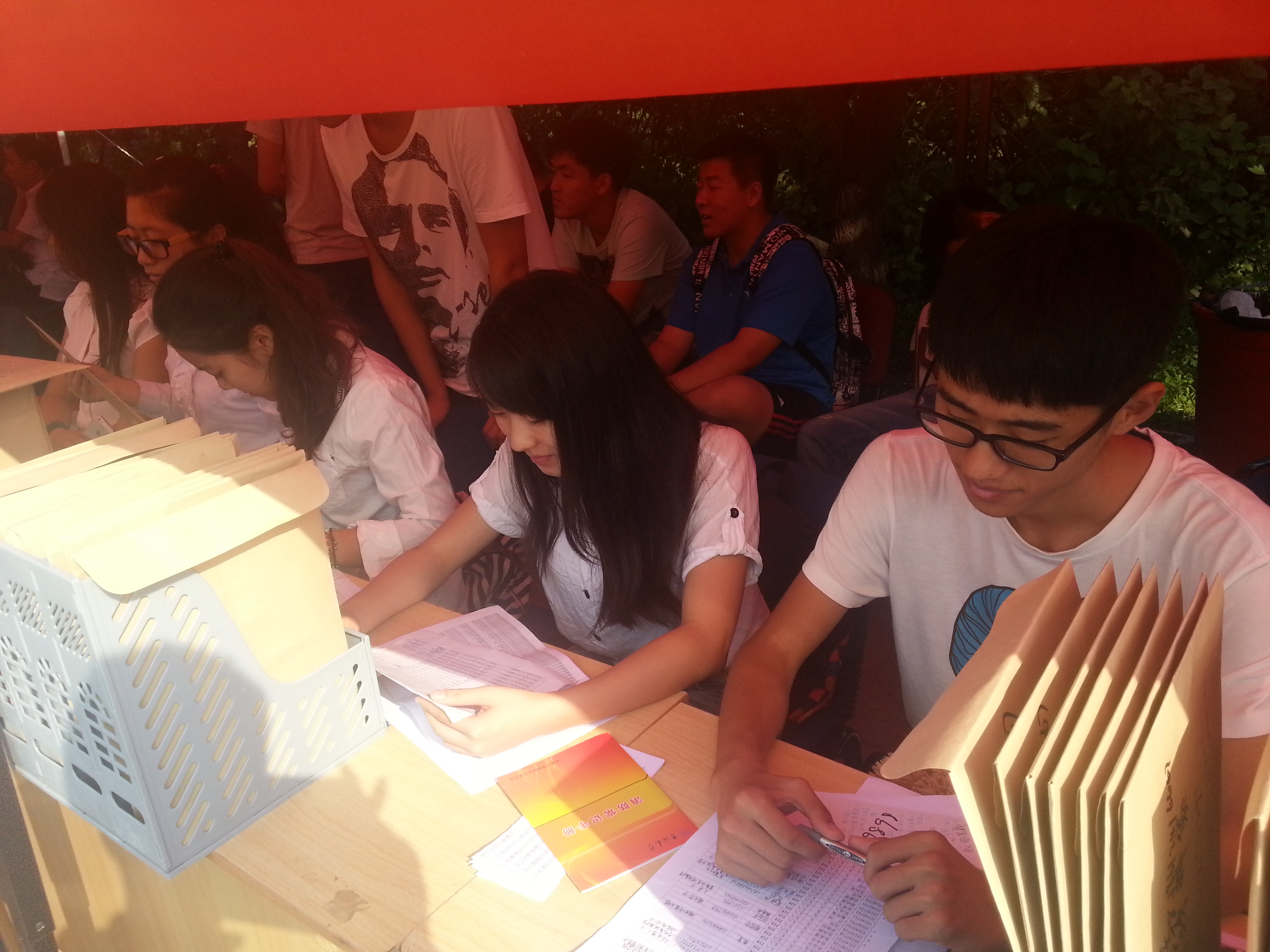 热情的志愿者在新生一下车时就迎上前去,帮忙引路、提行李,一路上给他们介绍着学校的“风土人情”。在迎新点领取新生材料袋、登记,志愿者全程服务,帮助新生顺利入住宿舍。学院临时为家长搭建的休息区,一路陪送的志愿者,为家长和同学讲解学校的各种情况,无不体现着数学学子的体贴与周到。