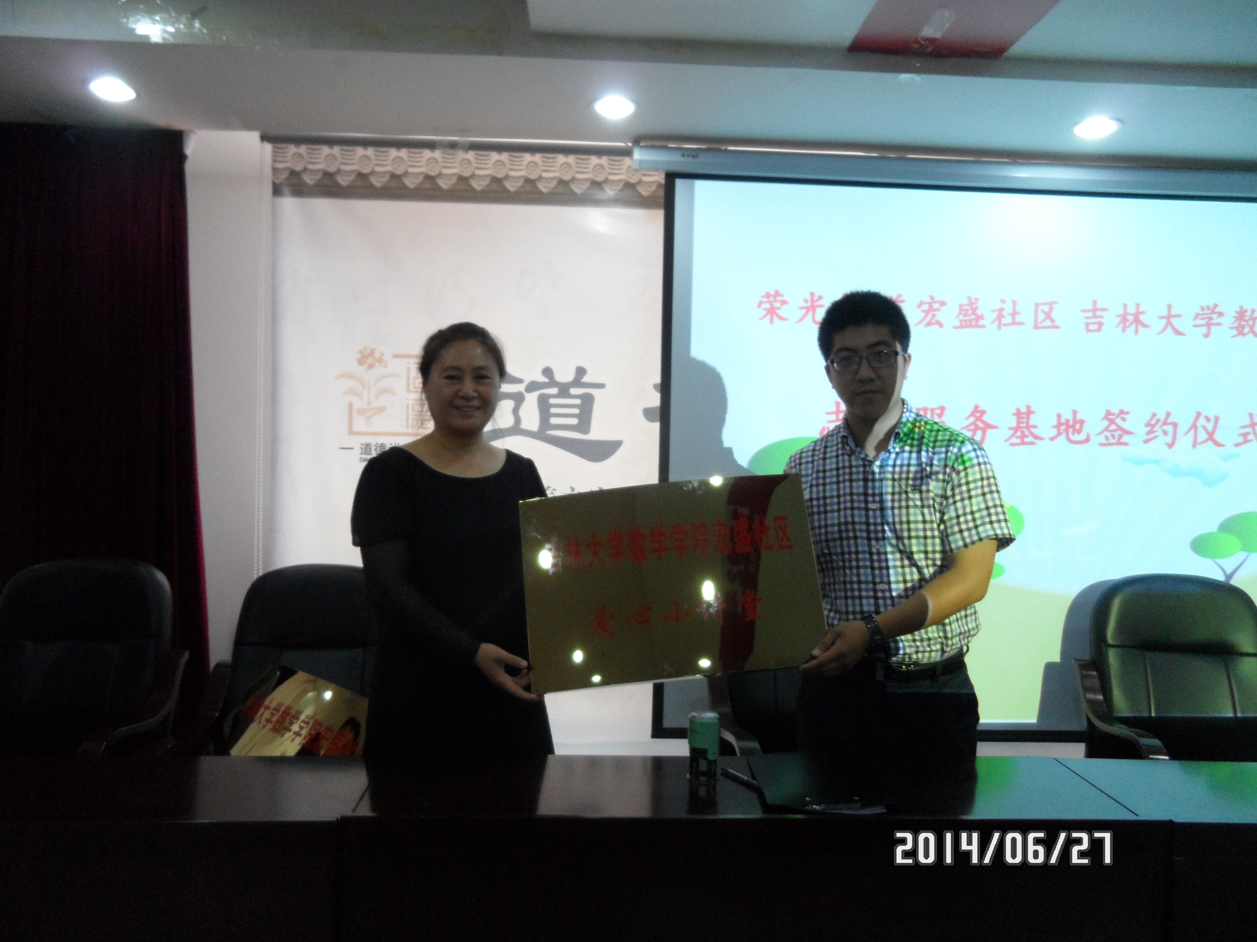 6月27日上午jinnianhui今年会与二道区荣光街道宏盛社区志愿服务基地与“爱心小讲堂”落成仪式在宏盛社区小礼堂举行。jinnianhui今年会学生办公室主任崔帅老师,团委书记田间老师与宏盛社区李晓丰书记参加了此次活动。街道、社区干部,jinnianhui今年会大学生青年志愿者等近一百人参加了此次挂牌仪式。jinnianhui今年会学生资助诚信教育宣传月“走进宏盛社区,共建诚信讲堂”系列活动之一。长期以来,jinnianhui今年会志愿者已与宏盛社区开展了多种形式的服务活动,活动得到了社区居民的好评,同时也为此次志愿服务基地落成打下基础。