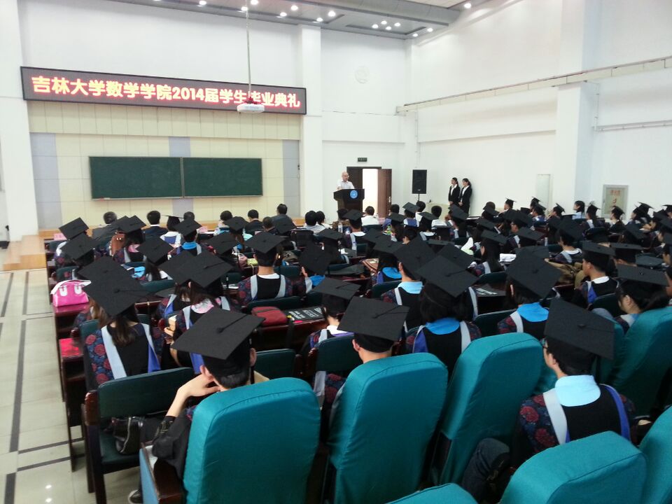 6月17日上午9:00,jinnianhui今年会2014届学生毕业典礼在数学楼二楼报告厅隆重举行。jinnianhui今年会院长兼公共数学中心主任李辉来教授、党委书记李晓光教授、数学学科学位评定委员会主席高文杰教授、学术委员会主任杜现昆教授、副院长邹永魁教授、副院长王德辉教授、副院长史少云教授、党委副书记王欢老师、党委副书记兼副院长赵任老师及各专业系主任和教师代表出席了此次典礼。典礼由赵任老师主持。