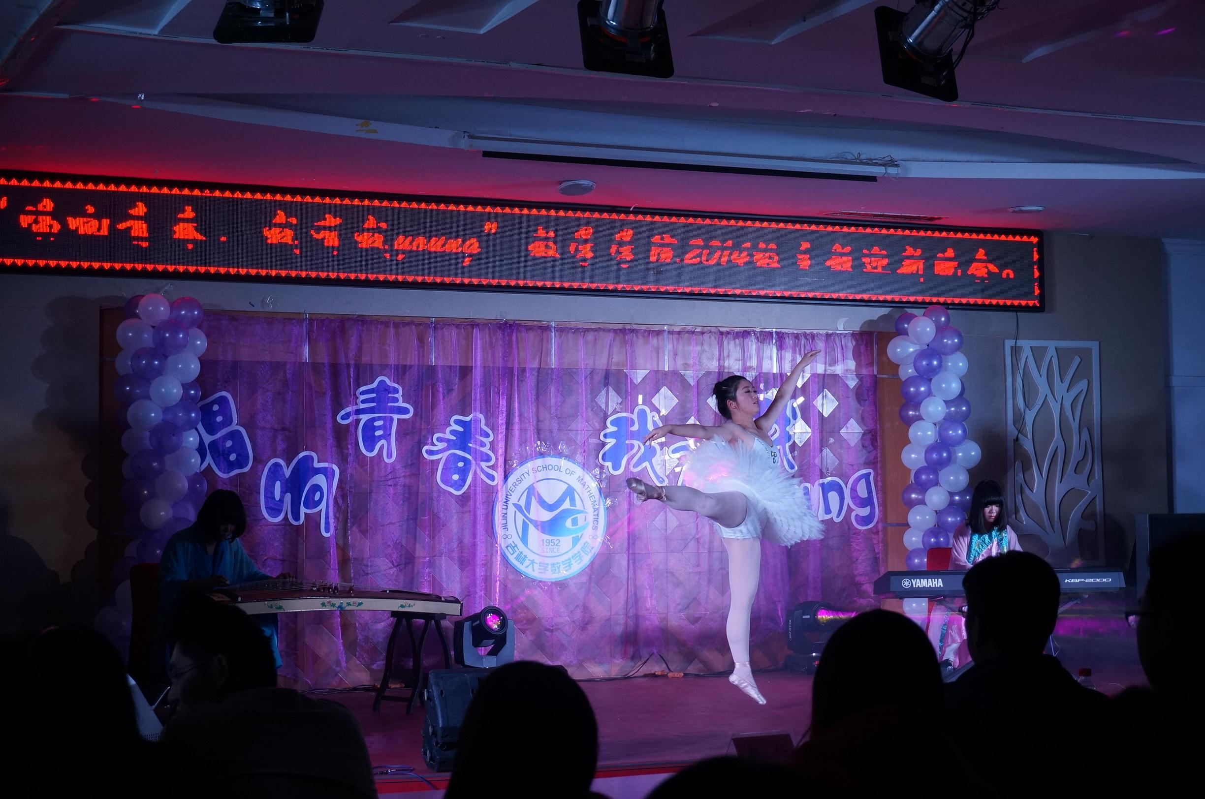 动感的音乐响起,大幕缓缓拉开,同学们带来精彩的开场舞,为整场晚会营造了火热的气氛。在热闹的开场舞后,晚会正式开始。晚会共分为“童年·天真纪”、“追梦·少年派”“ 舞动·青春时”“你好·旧时光”四个部分。由暖冬戏剧社表演的小品《人约黄昏后》幽默诙谐,演员们配合默契。代班代团带来的歌曲《改变自己》让同学们很是感动。诗朗诵《追求未来》道出了同学们勇敢追求梦想的决心。三句半《吉大风光》成为晚会的亮点之一。jinnianhui今年会激情四射的舞蹈把晚会又一次推向高潮,广场舞配上音乐《小苹果》更是“high”翻全场,博得掌声尖叫声不断。钢琴、古筝和芭蕾演绎出的《青花瓷》别有一番风味。学生会主席马思铭深情演唱的《给你》打动了在场所有人。乐队的表演《逐梦岁月》再次让全场活跃起来。晚会在由校学生会文艺部成员演唱的《最美的太阳》的温馨的歌声中圆满结束。