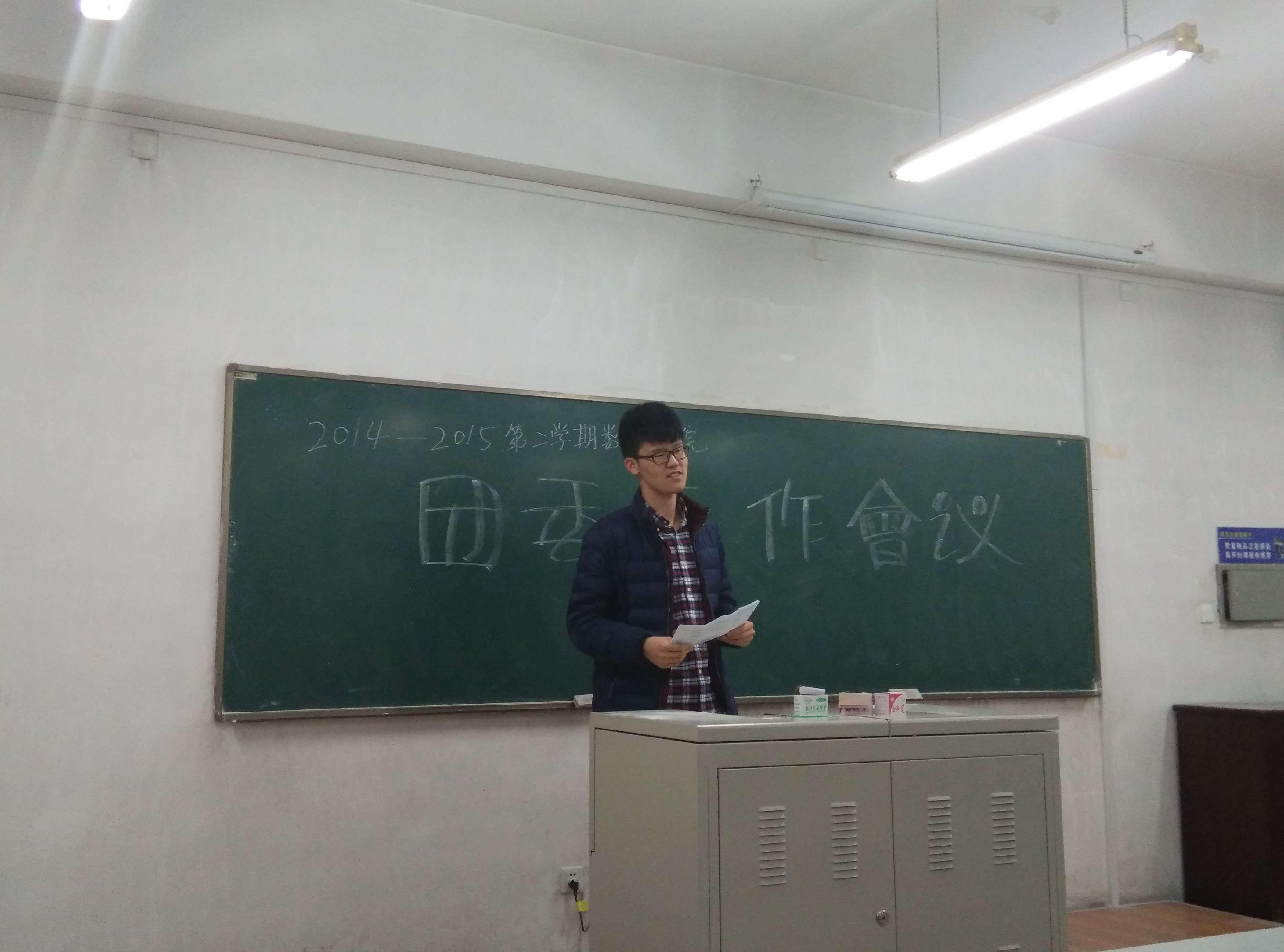 本次会议由团委副书记巩凡主持,到场的人员还有团委副书记曲月、孙宁,以及团委各个部门的部长、副部和部员。首先,团委副书记巩凡学长向大家说明了本次会议的主要目的及内容,紧接着由各个部门的副部或部员依次上台发言,汇报各自部门本学期的工作计划和活动安排。