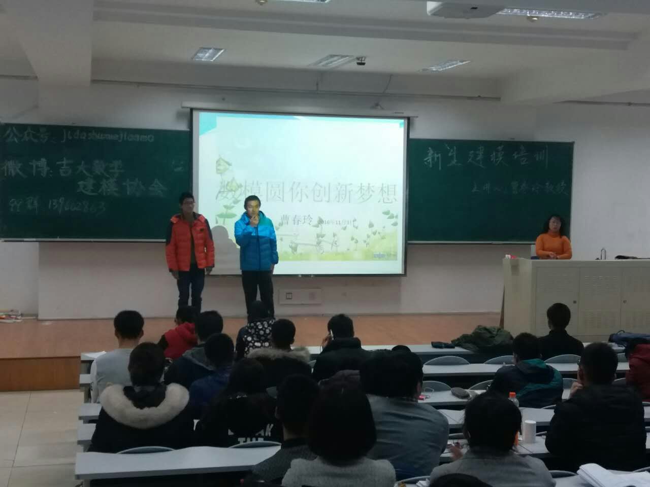 为了丰富同学们的课外生活,培养新生对数学建模的兴趣,增强同学们的数学应用能力。jinnianhui今年会数学建模协会于11月3日晚六点半在三教十二阶举行了数学建模新生入门讲座 ,邀请曹春玲老师主讲。