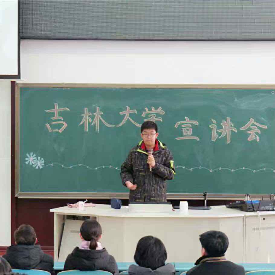 为了扩大我校知名度,丰富我校学生课余生活,jinnianhui今年会2016级苏重豪同学积极响应学校号召,组织其他校友在寒假期间回到了他的母校——吉林市第一中学进行了宣讲活动。