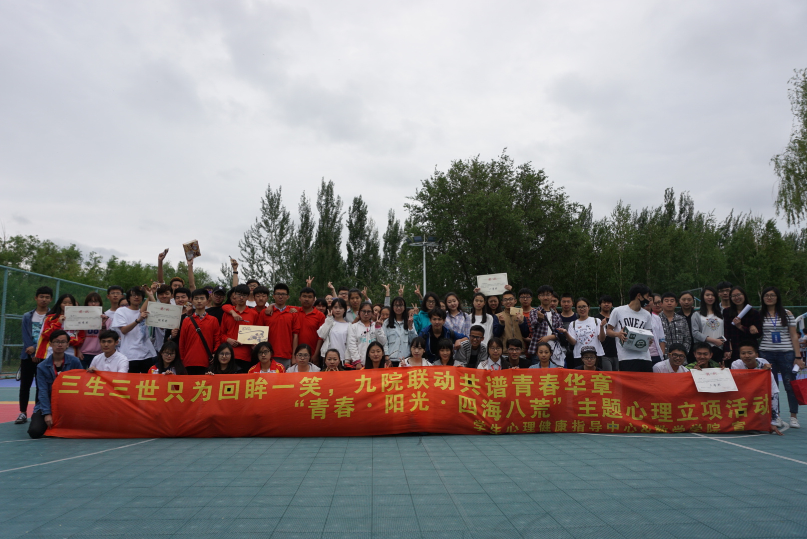 5月21日下午一点半在新篮球场,活动准时开始。第一个游戏穿越神秘岛,充分调动了大家的积极性,它主要考验的是队员之间的配合。第二个游戏趣味心理知识问答使同学们在游戏的过程中学到一些心理方面的小知识,拓展了同学们的知识面。第三个游戏加强版剪刀石头布把我们最熟悉的童年游戏玩出了新花样,使参赛人员很快就能熟悉游戏规则并融入其中。第四个游戏指压板跳绳也是童年游戏之一,只不过因为在指压板上进行而加大了难度。在各学院与其院旗合影留念这个小休息后,开始了本次活动的最后一个游戏——捕鱼。队员们在“捕鱼”与“躲网”的过程中都奋力奔跑,享受游戏过程,现场一片欢声笑语,同学们的身心都得到了很好的放松。最后,由心理中心的老师给获奖人员颁奖。