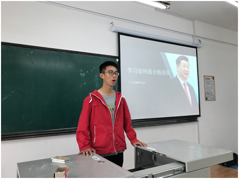 首先由班长讲述“学习如何做合格团员”,讲述结束后同学积极提问,班长一一为同学们的问题做了耐心解答,并引申出了自己对现今社会的看法。随后同学们自发分成小组进行讨论,各抒己见,纷纷发表自己的看法,以及对党对国家以及对中国梦的未来期望。随后每个小组都将自己的讨论结果进行了汇报,并且附上了参考文献。现场气氛活跃而热烈。