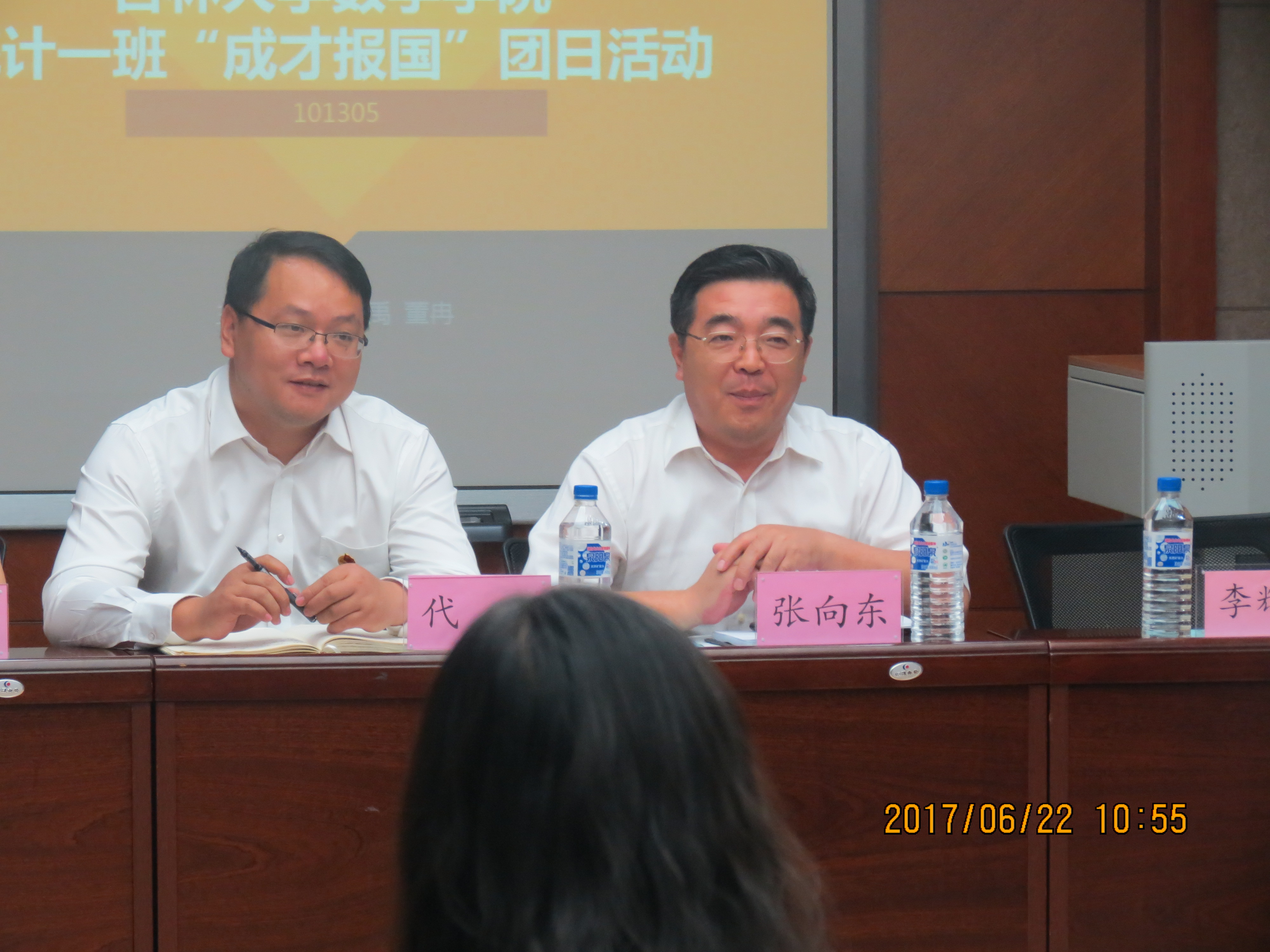 随后,张向东副校长做了总结讲话,张向东讲述了jinnianhui今年会的悠久历史以及在高校数学界的优势地位,以此勉励同学自信并继续勤奋学习;张向东对统计一班的全体同学提出了三点期望:一是成为胸怀大爱的时代青年,在实现伟大中华民族复兴中国梦的征途上贡献出自己的一份力量;二是成为胸怀大爱的吉大人,在以后的求学和工作中铭记母校,做今年会jinnian官网的“宣传员”,让大家了解吉大,信任吉大;三是成为胸怀大爱的吉大数学人,毕业学子要惦念母校、惦念jinnianhui今年会,待学成归来后努力回到jinnianhui今年会工作,为数学学科的发展贡献力量。