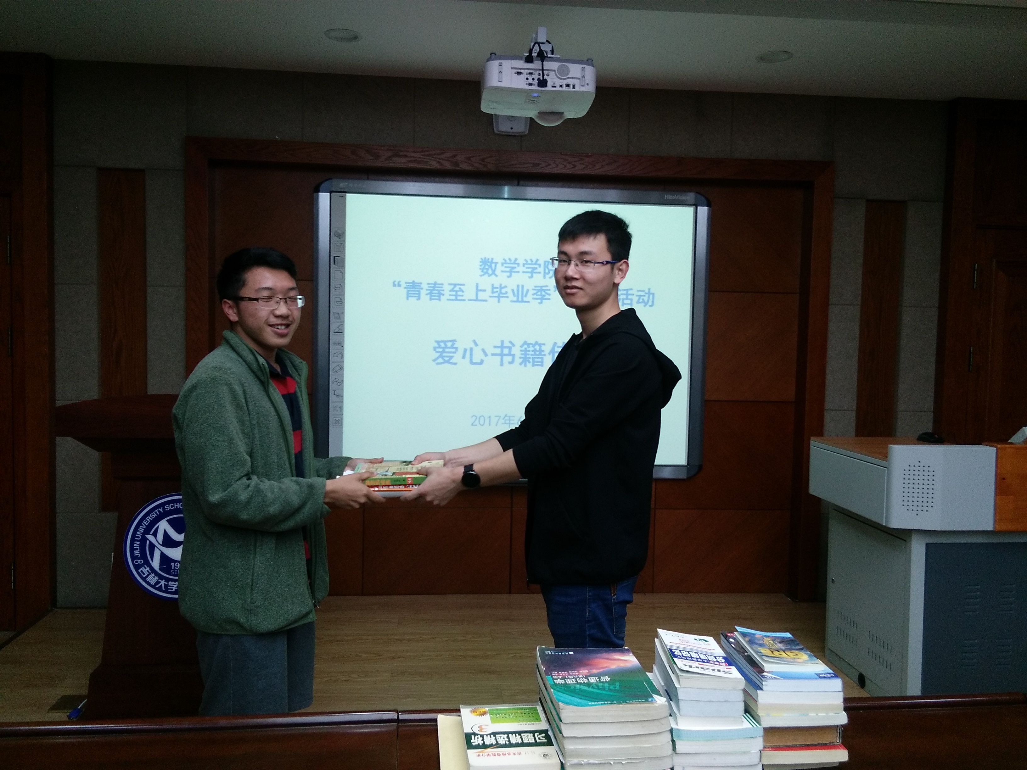 为了给大一的同学们提供便利,也让毕业生们在离校前给母校留存最后的纪念,jinnianhui今年会团委志工部于2017年6月9日在数学楼一楼报告厅组织了以“为了感谢身边最美的人,发现身边最美的角落,献给母校最感动的瞬间”为主题的图书赠予活动。