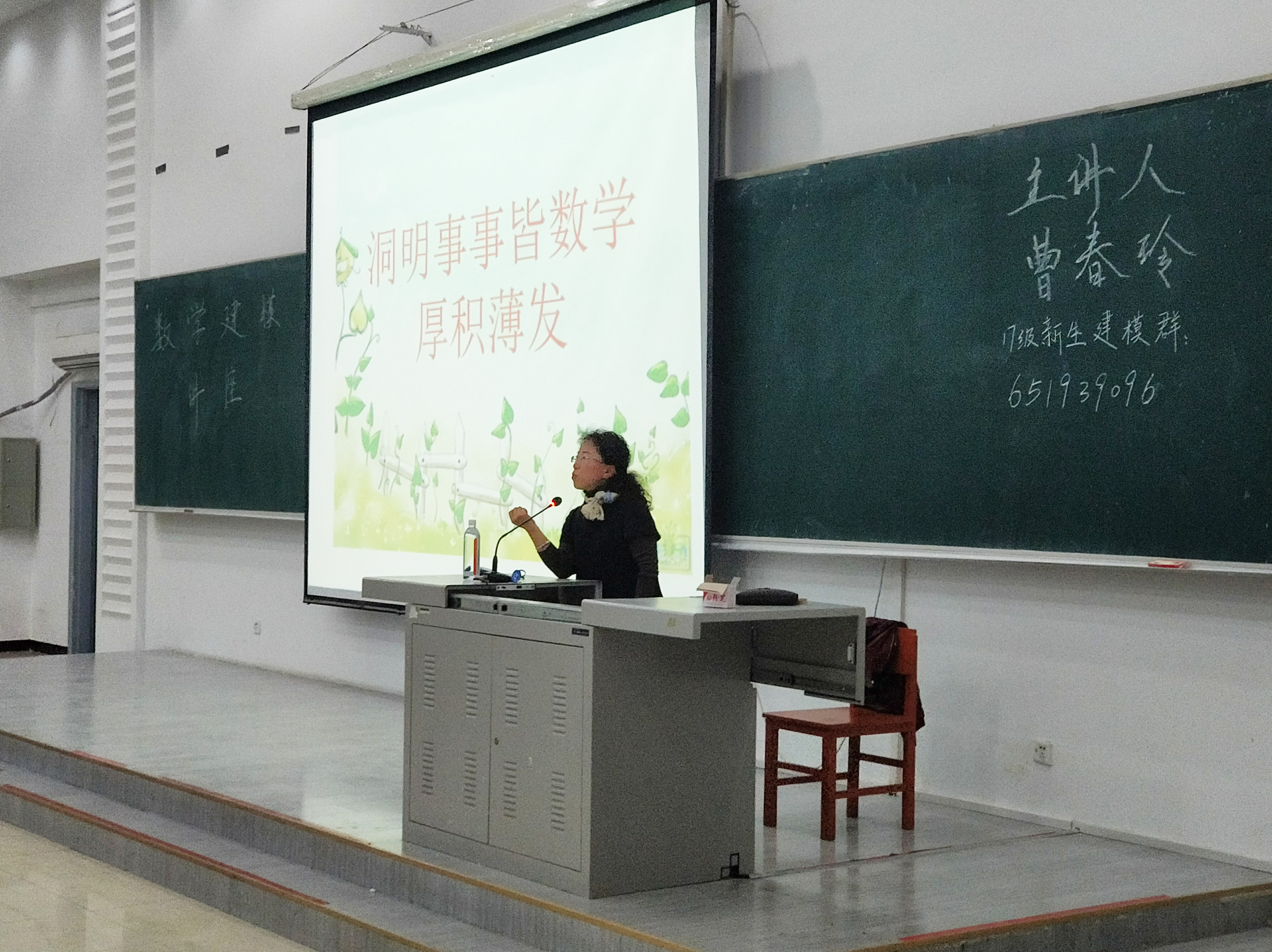 为了培养新生对数学建模的兴趣和数学应用能力,jinnianhui今年会数学建模协会于10月16日18:30,在经信楼第五阶梯教室举行了以“事事皆数学 厚积薄发”为主题的数学建模新生入门讲座,有幸邀请到曹春玲老师主讲。