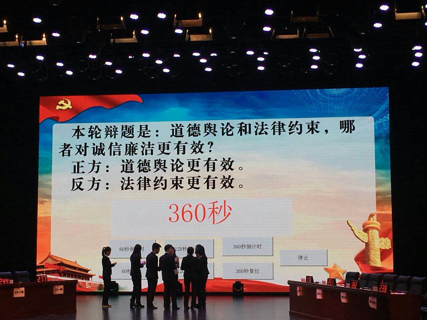 主持人阐述此次活动目的和意义后,比赛正式开始。第一轮为知识抢答环节,由30道选择题与20道判断题组成,题目以廉洁为主题、涉及中共现行廉政政策、国内外各项廉政法律条文等。比赛战况激烈,各支队伍抢答积极、表现活跃,比分交替增长。第二轮为即兴问答环节李玉涵就“作为一名学生党员,如何提高党性修养,加强学习型、服务型、创新型支部建设”进行了180秒的即兴回答,第三轮为主题辩论环节,题目为“道德舆论和法律约束,哪者对诚信廉洁更有效”。苗凯伦同学抽取反方一辩,陈述了在当前社会环境下法律约束要比道德舆论更具有时效性,更加的简洁高效。第四环节为主题猜词。40秒答题时间内,系统随机给出与廉政有关的成语、机构、罪名、影视作品,李玉涵同学描述,刘月同学猜词,两人配合默契,接连答对3题。第四轮为主题附加展示环节。秦雨萱、宋佳宁、李泉瀚同学进行了软笔书法及诗朗诵表演。五轮比赛结束后,jinnianhui今年会获得第五届大学生廉洁文化知识竞赛三等奖、“优秀组织单位”奖。