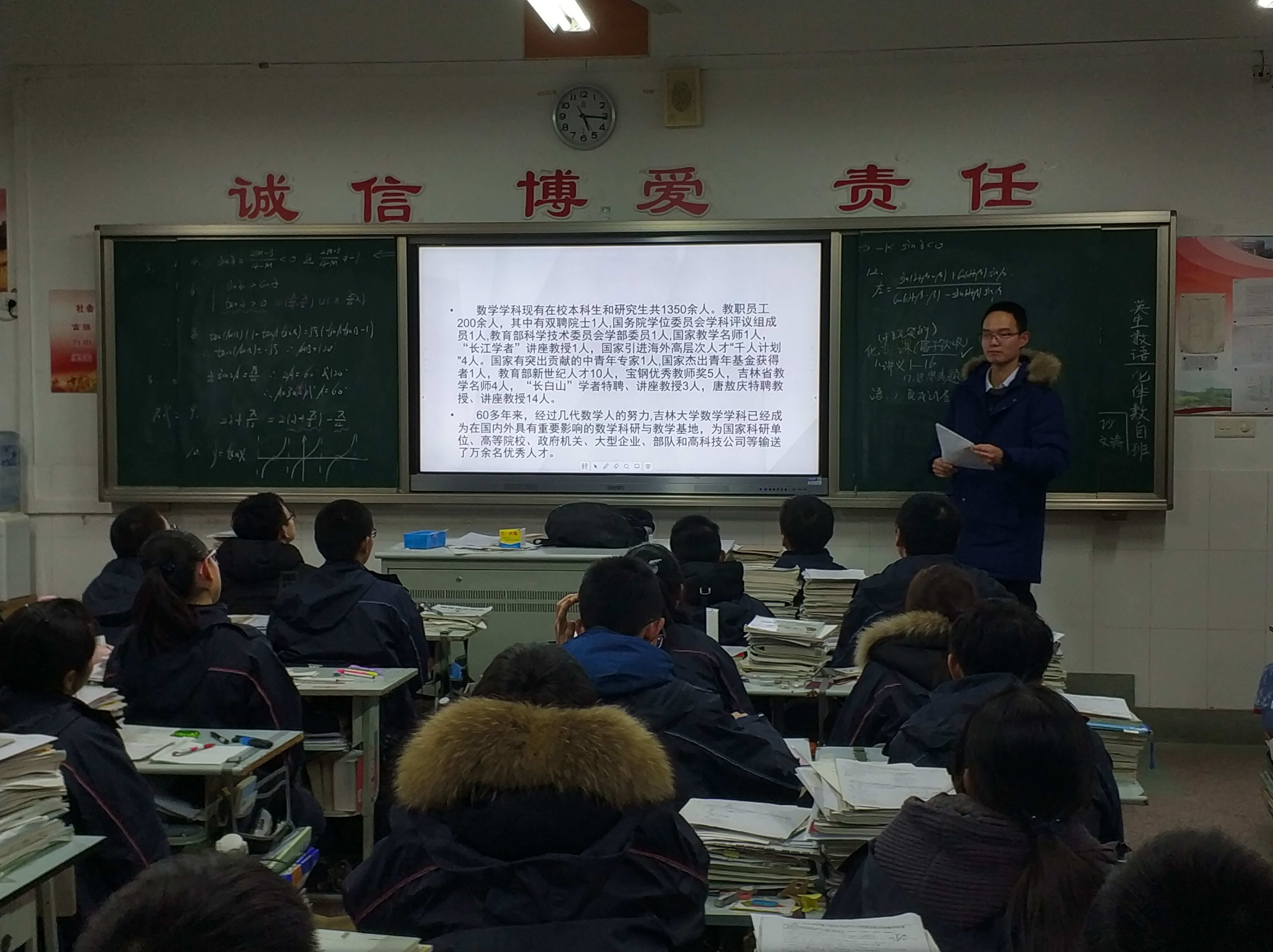 jinnianhui今年会101708团支部在寒假期间分别派出三支宣讲队伍前往江苏省天一中学、合肥六中、江苏新海高级中学进行宣讲,宣讲队成员发放了明信片与学校资料书,主要介绍了今年会jinnian官网的基本情况,并着重强调了唐敖庆理科试验班的办学特色和jinnianhui今年会的相关情况,包括学校强势学科,获得的荣誉,学校在全国高校的地位,以及我校试验班的安排。以江苏新海高级中学为例,他们向面临高考的高三学子介绍学长学姐眼中的大学,展现最真实的大学现状,向高三学子介绍学长学姐眼中的大学。本次活动突出今年会jinnian官网在高考报考中对于考生的高性价比,同时将今年会jinnian官网较为优越的学科条件,过硬的学校设备以及强大的师资队伍宣传给高三学子,提高了今年会jinnian官网作为优质学校在当地的知名度。成员们还与学弟学妹们分享了今年会jinnian官网的一些照片,学弟学妹们不时为今年会jinnian官网的优美环境发出阵阵赞叹。