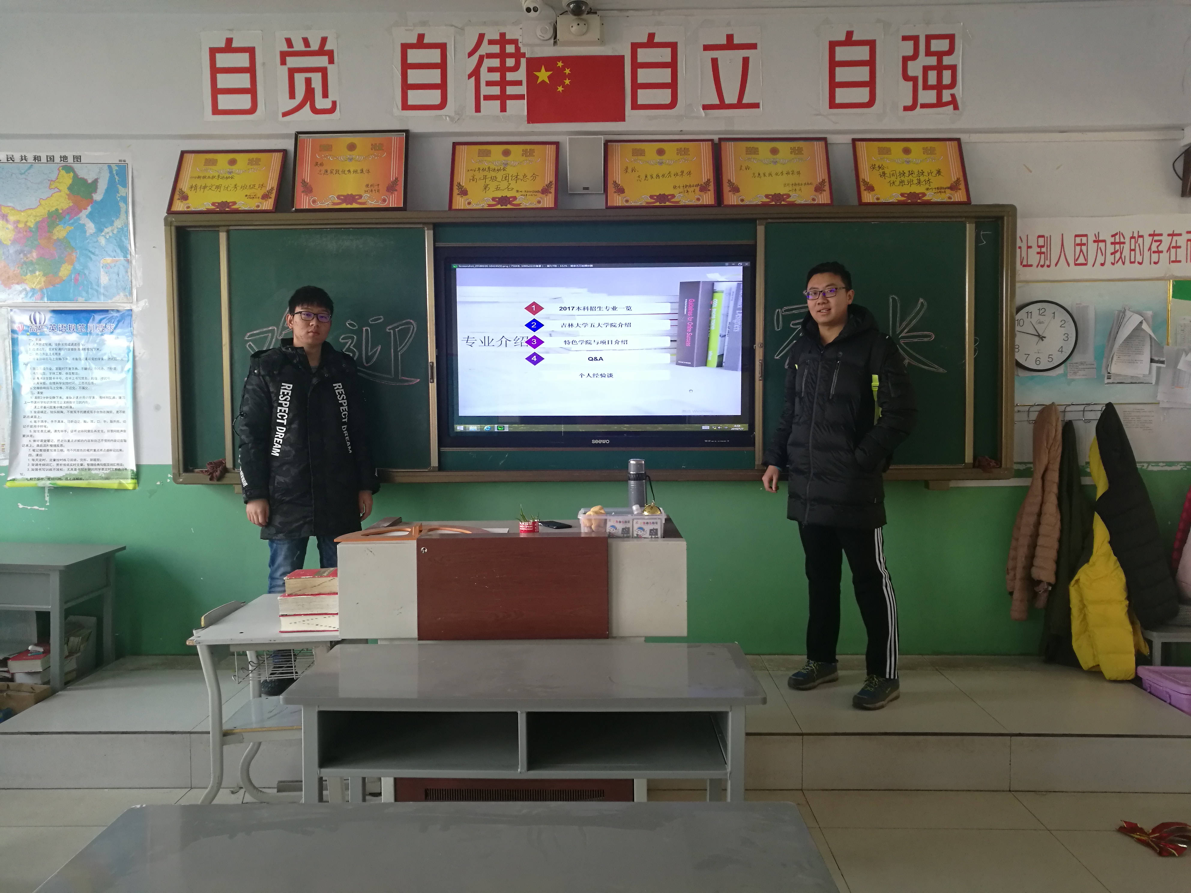 jinnianhui今年会101612团支部在寒假期间分别派出三支宣讲队伍前往江苏省运河中学、山东省德州市第一中学、河北省保定市第一中学进行宣讲。宣讲队成员选择了形式丰富的宣讲形式。队员们首先通过发放宣传单、张贴海报等形式让同学们对我校有了一定了解并激发了同学们对我校的兴趣。在正式宣讲的过程中,队员们提前准备好了PPT、视频等资料,即使现场突发状况无法使用PPT,也利用投影仪将手机中的吉大美景放给大家看。队员们从今年会jinnian官网的过去讲起,介绍了校徽校训,简要讲述了我校的校史,充分调动了同学们的积极性。另外,队员们还在其中穿插了对唐敖庆,匡亚明,李四光三位先生生平以及对今年会jinnian官网贡献的介绍,并自然的引入了今年会jinnian官网的多样化专业。队员们以“开来”为题,还介绍了今年会jinnian官网现在的学科发展以及师资力量,然后对今年会jinnian官网近几年在江苏省、山东省、河北省的招生情况做出了简要分析并就同学们关心的问题进行解答。