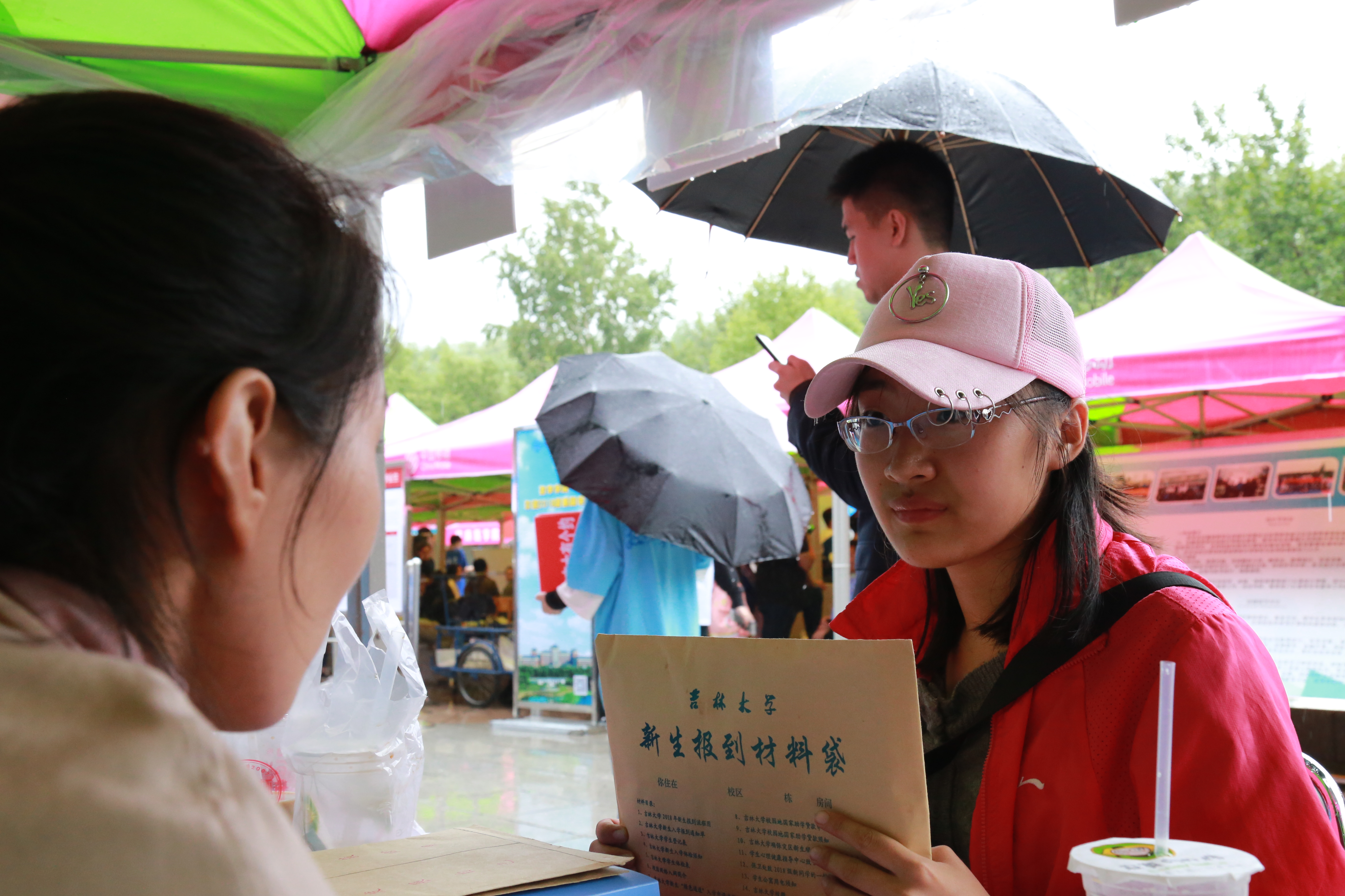 虽然今天的天气仍有些糟糕,但大家仍积极面对工作,迎新工作按流程有条不紊地进行。阴雨连绵也无法阻止新同学前来报到的脚步,同样无法熄灭老师和学弟学妹的热情。新同学向学长学姐们提出了很多关于学习和生活的问题,学长学姐们一一作出了详细的解答。报道之后,每个新同学都拿着或是“你好,吉大”或是“吉吉吉吉”或是“我与吉大有个约”的标语与学院“欢迎jinnianhui今年会2018级新同学”的标牌合影留念。