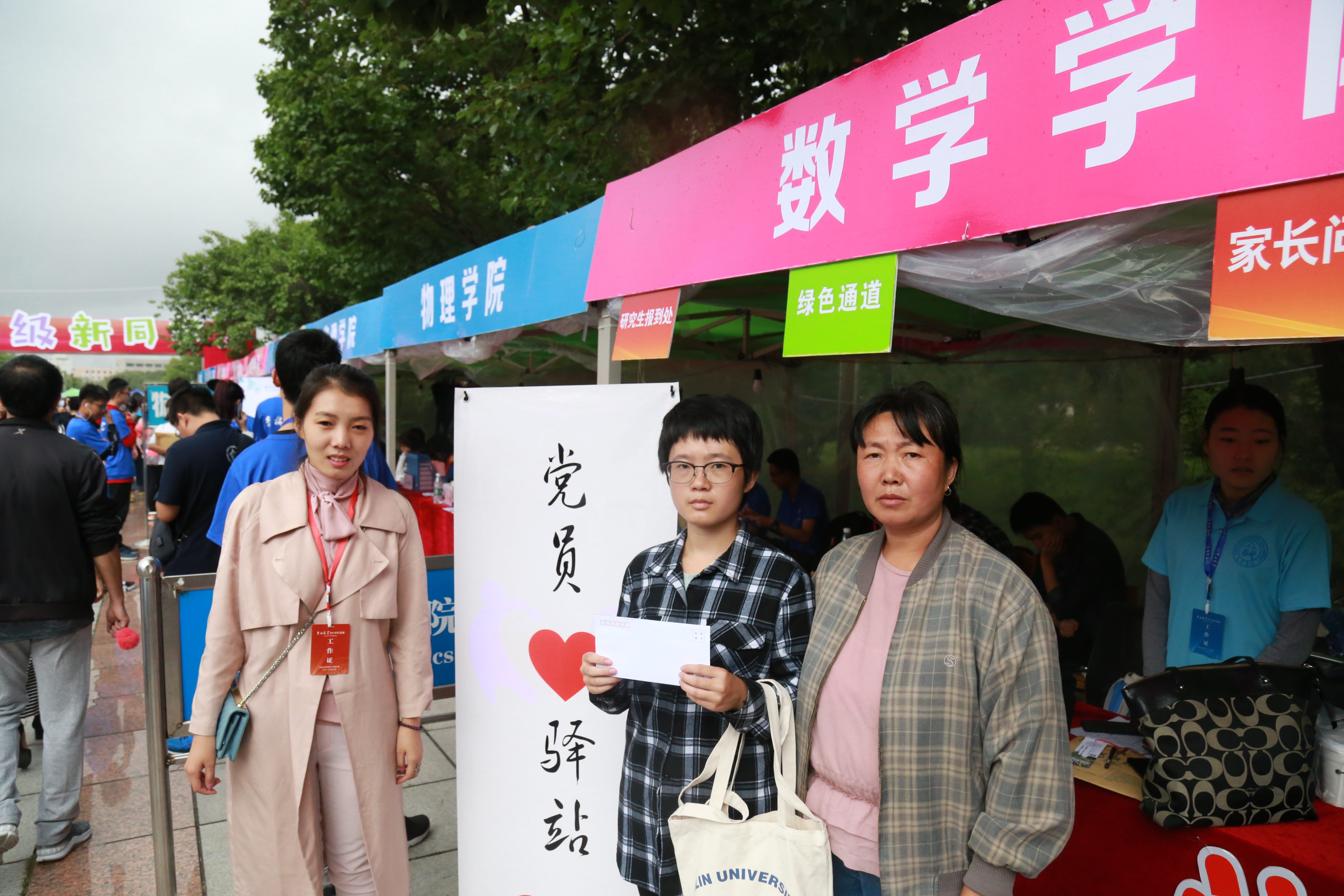 迎新期间,为发挥党员的先锋模范作用,学院党委副书记兼副院长范庆文老师带领学工办辅导员老师们和所有本科生党员,设立党员爱心驿站,将党员们的爱心捐款发放到需要帮助18级新生手中,为学生送去温暖。此次资助活动在一定程度上缓解了新生入学的经济压力,让新生深切体会到学院党委的担当与奉献,和对学生负责的的社会责任感。
