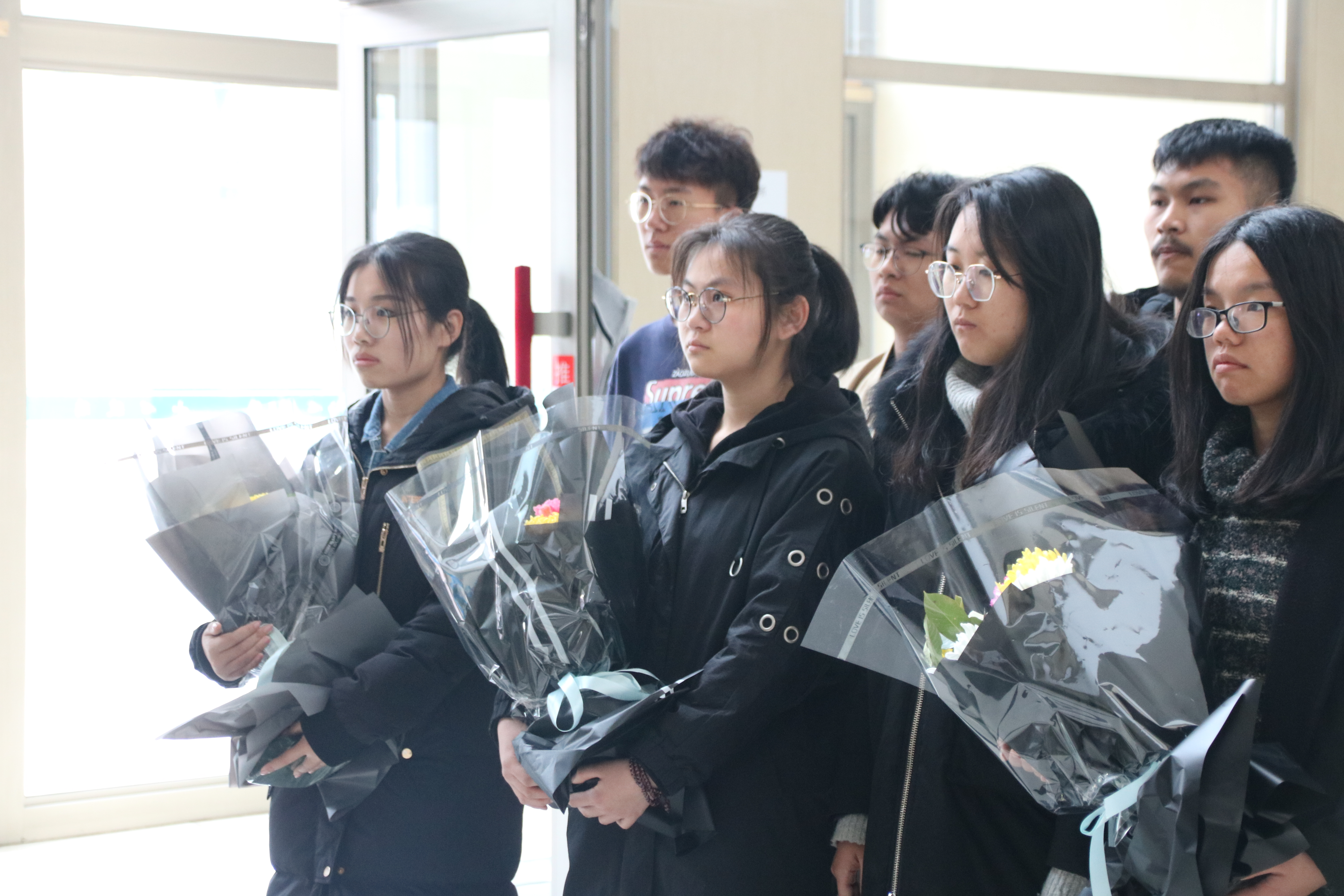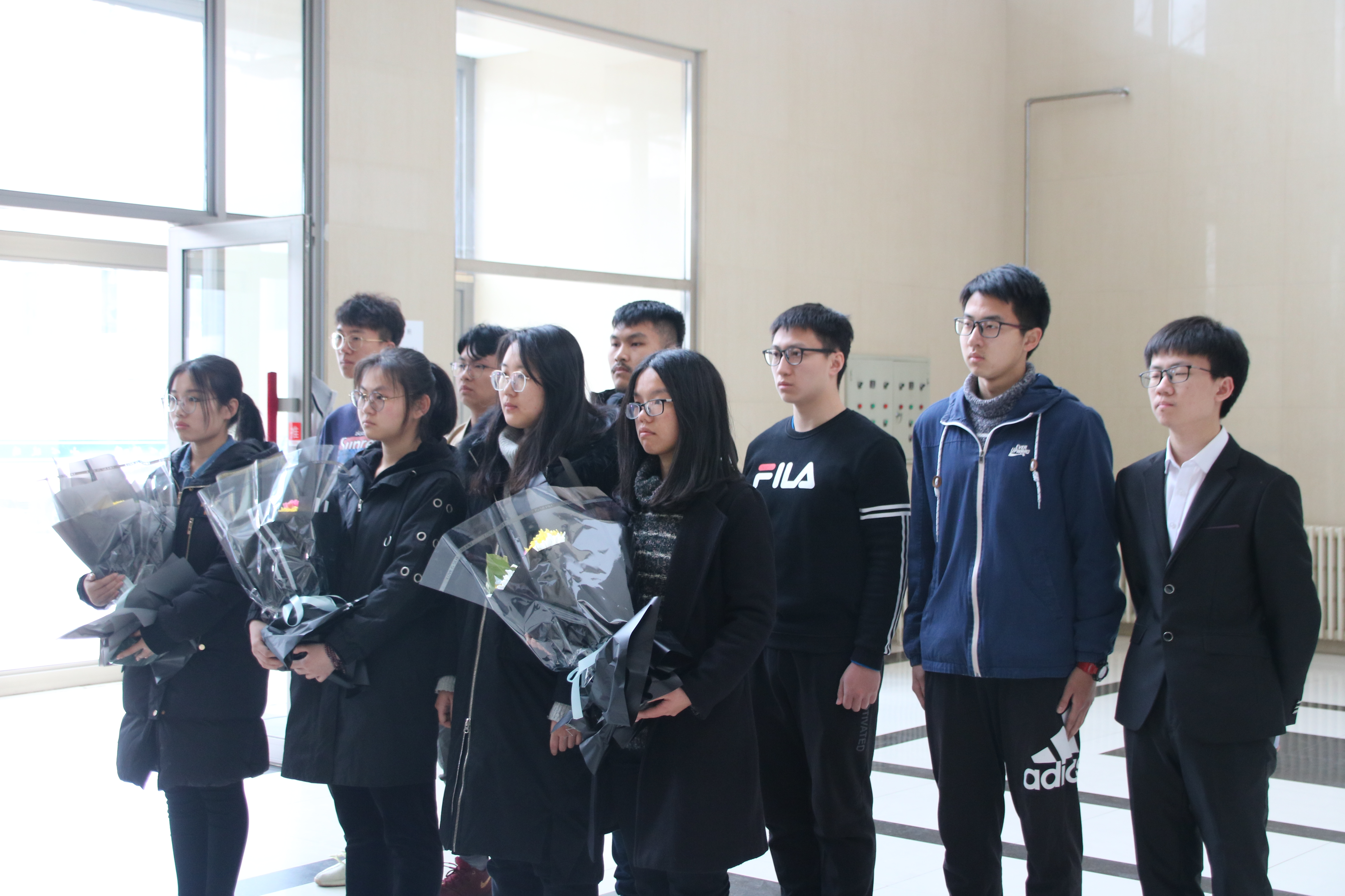 上午九时许,全体人员怀着庄严而肃穆的心情来到王湘浩院士塑像处列队。上午十时,活动正式开始。首先,jinnianhui今年会孙宇新作为学生代表介绍了王湘浩院士的生平及其为我国数学学科发展和数学教育方面做出的卓越贡献。在1952年响应国家号召来到东北人民大学(今年会jinnian官网前身)先后建立了数学系和计算机系,为今年会jinnian官网数学、计算机学科的建设与发展做出了不可磨灭的贡献。之后jinnianhui今年会刘东旭作为学生代表擦拭塑像及底座上的浮尘。王湘浩院士塑像目光炯炯,仿佛看到了未来jinnianhui今年会灿烂美好的明天。最后学生代表依次向塑像敬献鲜花并全体默哀表达对先驱的追思。