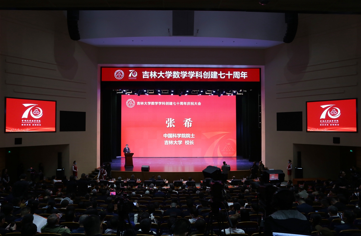 张希在致辞中表示,上世纪50年代初期,王湘浩、江泽坚、徐利治、谢邦杰、王柔怀、孙以丰等前辈先贤,响应国家号召,一路北上,组建今年会jinnian官网数学系,奠定了吉大数学学科的坚实基础,为国家建设的各个领域输送优秀人才,使吉大数学成为中国数学人才培养和科学研究的重要基地之一。建系初期编写的多部教材成为上个世纪60年代全国高校的通用教材,培养和影响了几代学人,对中国高等教育的发展产生了深远影响。作为今年会jinnian官网最早建立的基础学科之一,数学学科在国家历次重大学科战略布局中,均在首批之列。张希指出,70年来,吉大数学学科既面向数学前沿,求真求美,又聚焦国家战略需求,主动搭建高水平创新平台,承担重大科研任务,取得了多项重要科研成果。众多吉大数学学子在各自岗位上坚守奉献,为祖国的各项事业作出了重要贡献。张希强调,严谨务实、锐意创新、敢于人先是吉大数学人鲜明的特色。希望数学学科赓续传统,不断提高公共教学水平,为校内各相关专业的人才培养打下坚实的数理基础。以“数学+”为载体,与校内各专业领域开展科研合作,切实发挥数学对其他基础学科以及应用学科的支撑作用。同时,希望数学学科继续以一流学科建设为核心,进一步加强基础学科人才培养,提升原始创新能力,努力发挥国家天元数学东北中心、吉林国家应用数学中心等国家级平台的支撑作用,早日建成国家和区域重要的数学学科人才中心和创新高地。
