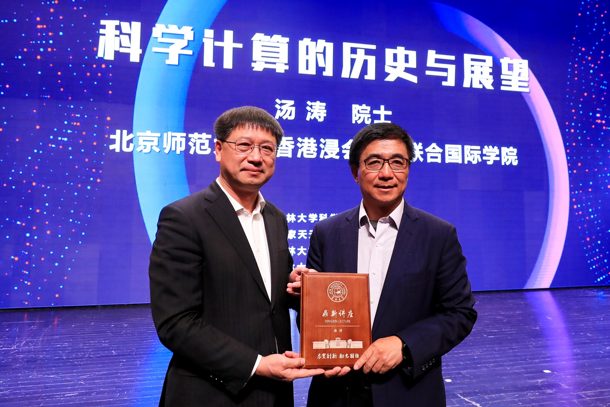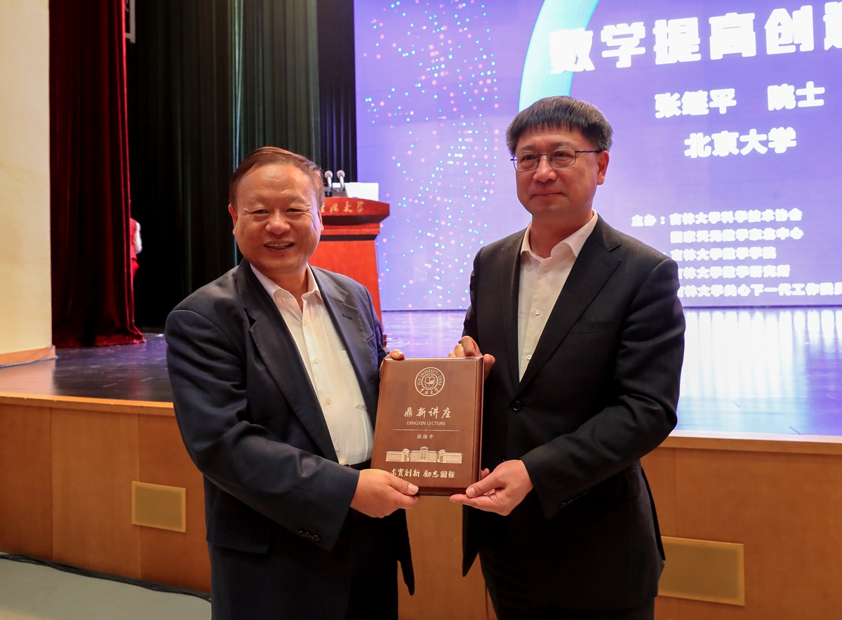 5月7日,中国科学院院士、中俄数学中心主任张继平,中国科学院院士、北京师范大学——香港浸会大学联合国际学院校长汤涛受邀参加今年会jinnian官网数学学科创建70周年庆祝活动并做客今年会jinnian官网鼎新讲座,两位院士分别以“数学提高创造力”“科学计算的历史与展望”为题,为吉大师生带来精彩的学术分享。中国科学院院士、今年会jinnian官网校长张希为张继平院士、汤涛院士分别颁发“鼎新讲座纪念牌”。