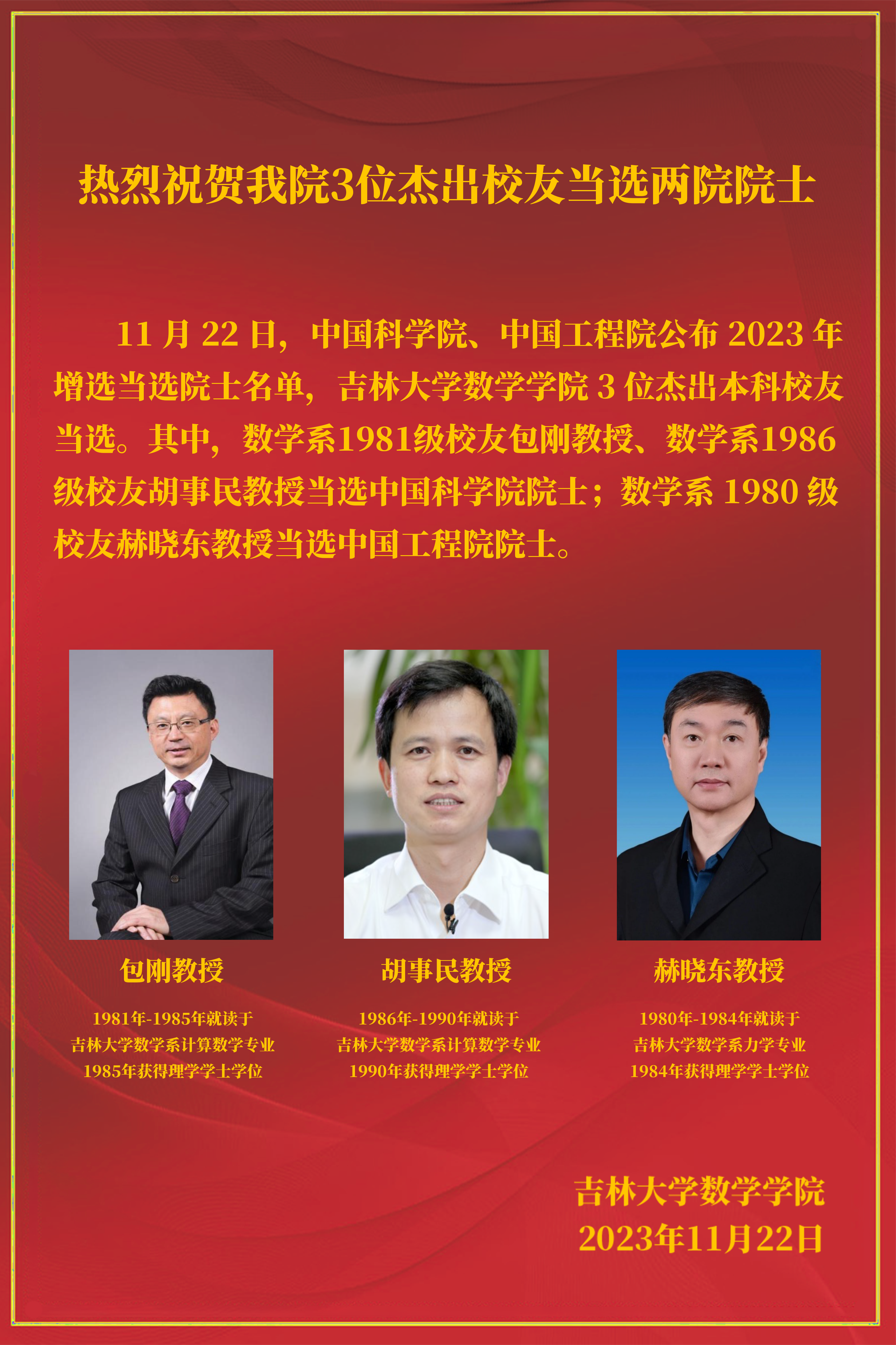 热烈祝贺我院3位杰出校友当选两院院士