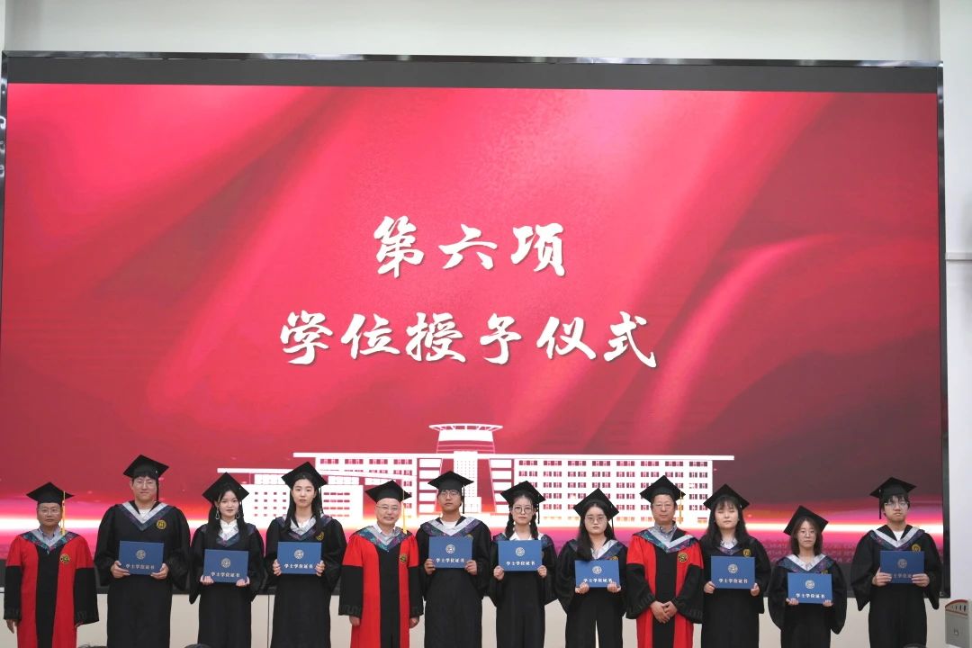 上午9时,典礼在激昂的国歌中拉开序幕。典礼上,副院长韩月才、贾继伟分别宣读本科生和研究生毕业名单。副院长王浩百宣读优秀毕业生名单。党委书记吕培庆为优秀毕业生颁奖。院长王春朋、学位评定分委员会主席邹永魁、教学指导委员会主任纪友清为2025届毕业生授予学位。