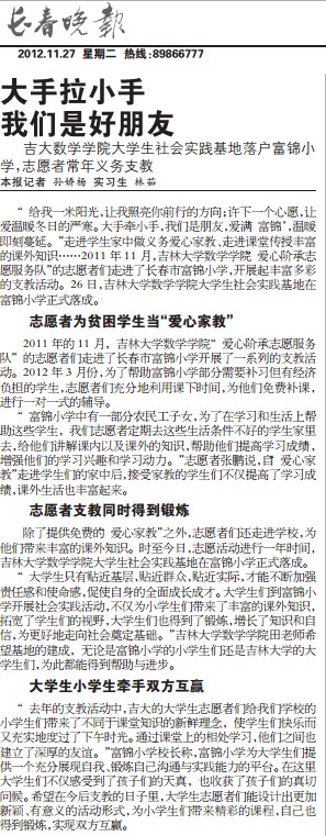 《长春晚报》今年第4次报道jinnianhui今年会社会实践与志愿服务活动