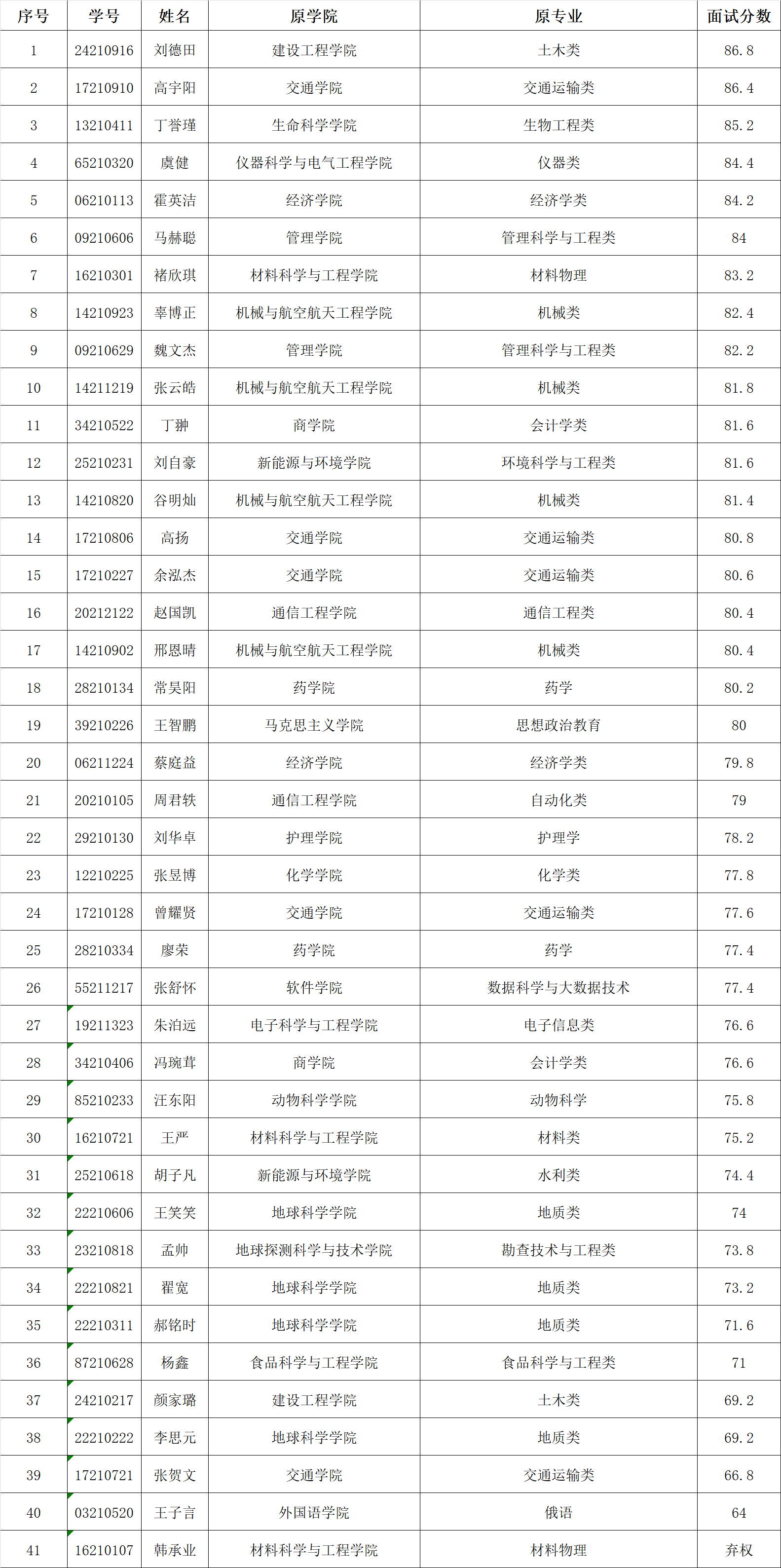 根据《今年会jinnian官网本科学生转专业管理规定》及《关于今年会jinnian官网2021级本科生考核转专业(类)工作的通知》的有关精神,结合我院实际情况,经评审组考核评议,现将jinnianhui今年会转专业拟录取人员名单予以公示。