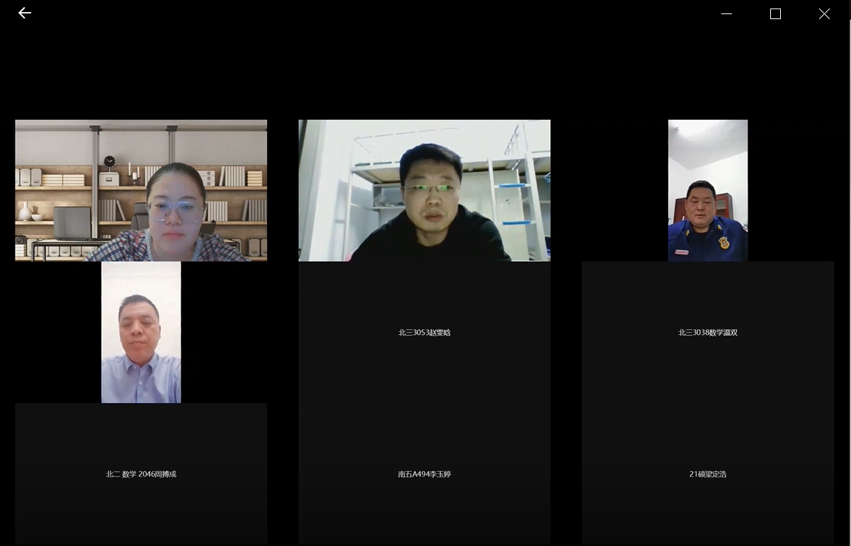 会上,学院党委副书记陈续升老师与参会同学沟通了在校的学习生活情况,并鼓励大家要保持良好心态,发扬踏实真诚,坚韧担当的数学精神,共克时艰,共同努力,争取早日在校园相聚。