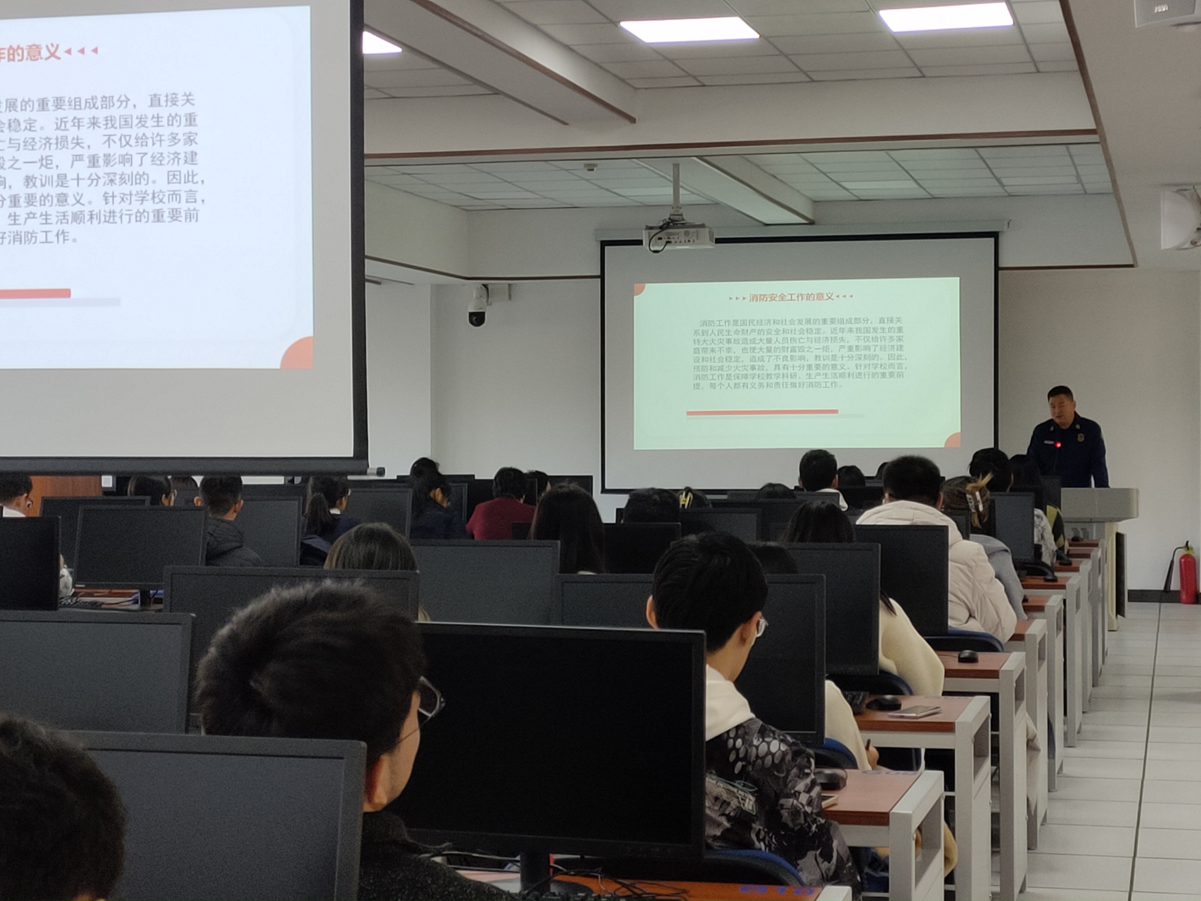 保卫处董立明老师先介绍了今年会jinnian官网消防安全管理规定,落实安全制度,强化安全管理,简明地讲述了基本的消防安全知识。然后,董老师以多起大型火灾事故为例,结合视频进行讲解,警示同学们注意不要做出违规行为,如人走不断电、在床上长时间充电等;普及火场的正确逃生办法,如湿毛巾捂住口鼻、禁止乘坐普通电梯等,同学们都受益匪浅。