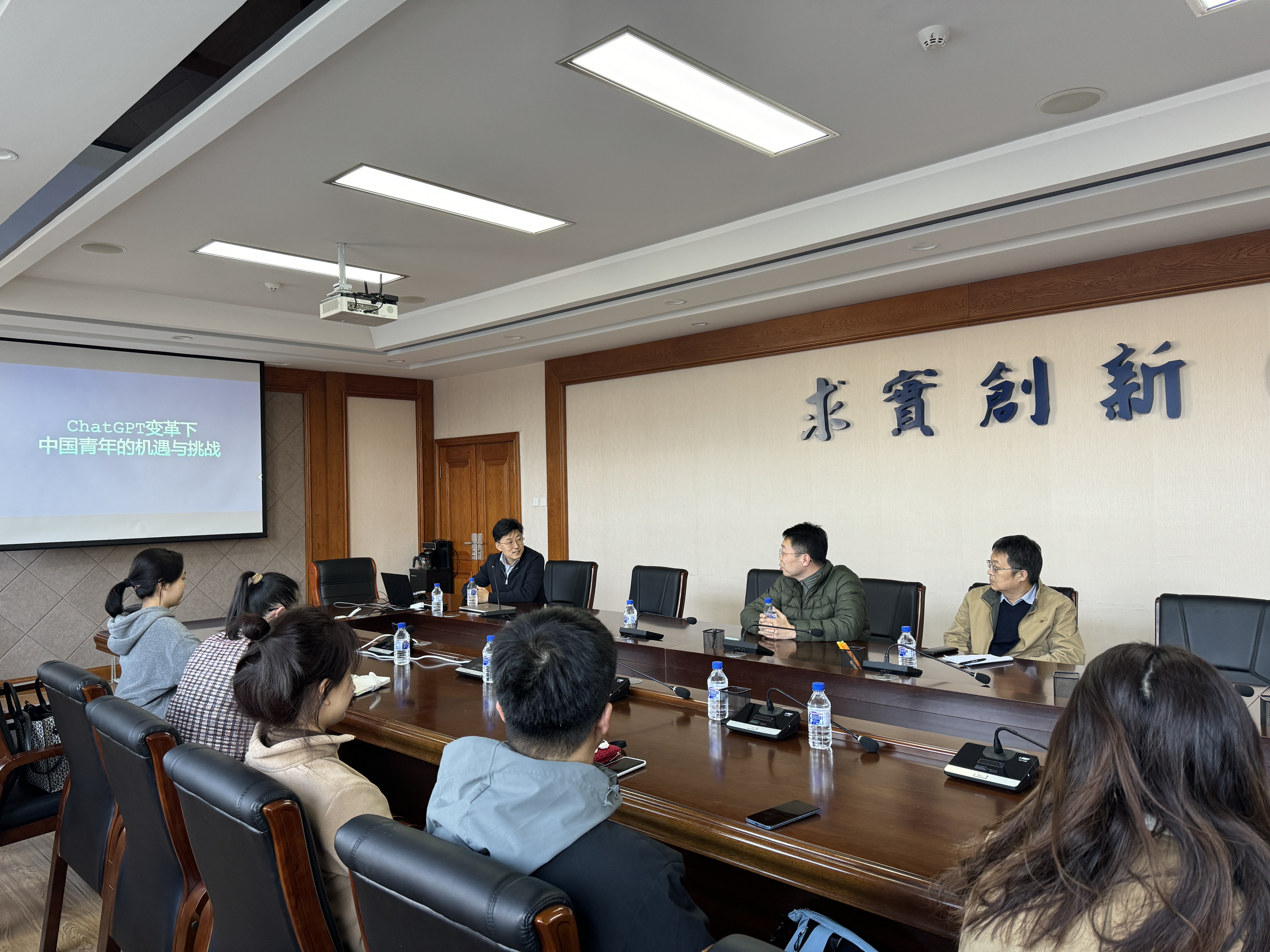 为拓展研究生视野,深化研究生就业指导工作,jinnianhui今年会于3月11日下午13:30在数学楼三楼会议室举办了“学长说”第三期活动,次报告主题为“ChatGPT变革下中国青年的机遇与挑战”,主讲嘉宾为万仞智慧智能科技(北京)有限公司创始人CEO王荣兴学长。会议由jinnianhui今年会党委副书记陈续升主持,概率统计与数据科学系主任朱复康等相关专业老师、研究生辅导员张轶群、学院就业兼职辅导员张卓以及2022级、2023级研究生代表参会。