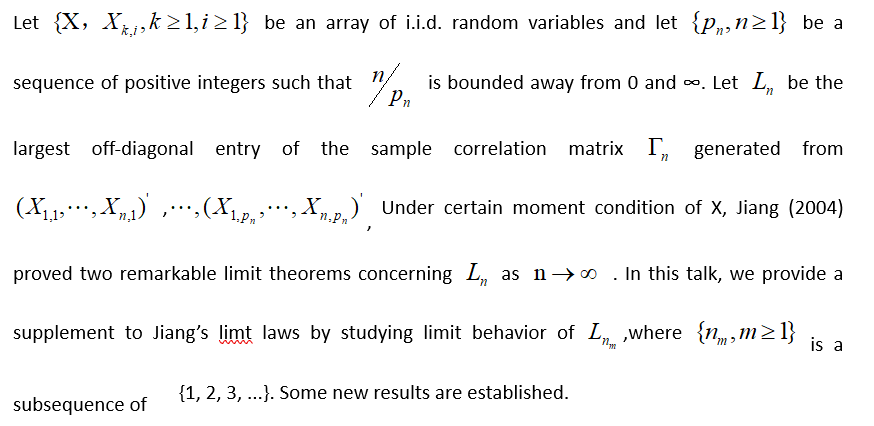 报告题目:A Supplement to Jiang's Limit Laws