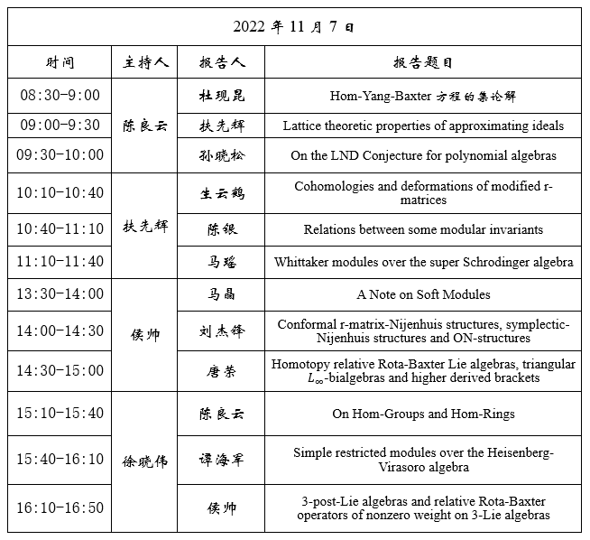 代数学研讨会会议日程