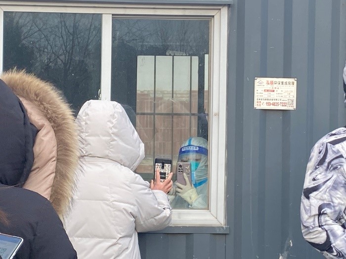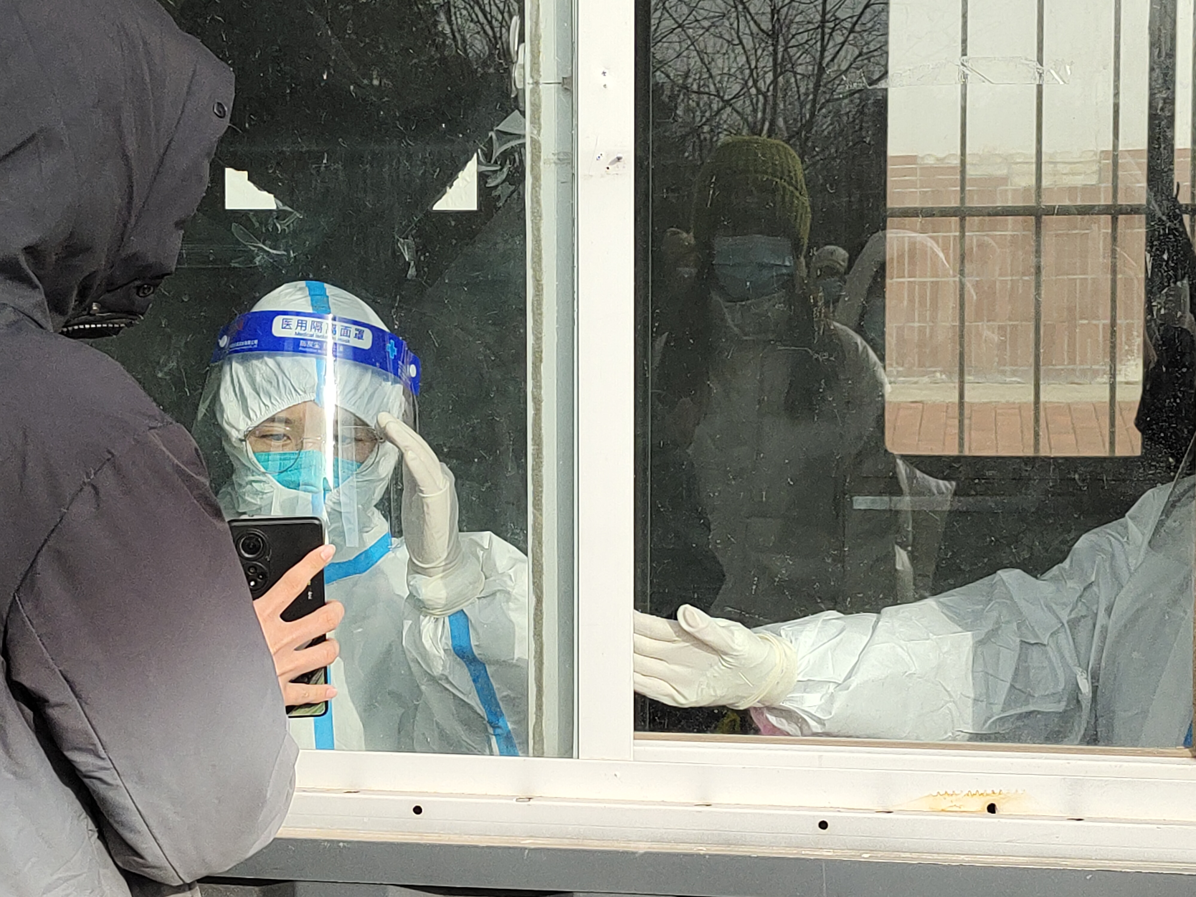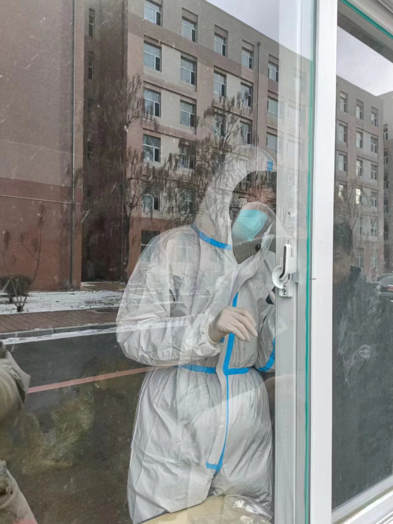 11月30日下午2点,jinnianhui今年会的40名志愿者们就在各个核酸监测点完成集结,他们在本就厚重的羽绒服外穿上防护服,每个同学们面临的都是将近5小时不能喝水、不能脱下防护服,还要在东北11月的凌冽寒风中坚守,即使手被冻僵,面罩上已有一层薄薄的冰,但是我们的数学大白们仍没有一丝松懈的积极配合着检测点医务人员的工作。2021级研究生杜美璇同学表示:“学校的后勤保障工作经验丰富、考虑周到,十分贴心的为各个大白们准备了暖宝宝和加热鞋垫,即使寒风萧瑟,也没感到十分寒冷。完成了一组又一组同学们的扫码工作,反而有些许兴奋,为自己终于能在这场抗疫持久战中贡献一份自己的微薄力量而开心。”就是这样一个又一个平凡的身影,化作点点星光,照亮着校园里的每一个角落,凝聚起战胜疫情的磅礴力量。