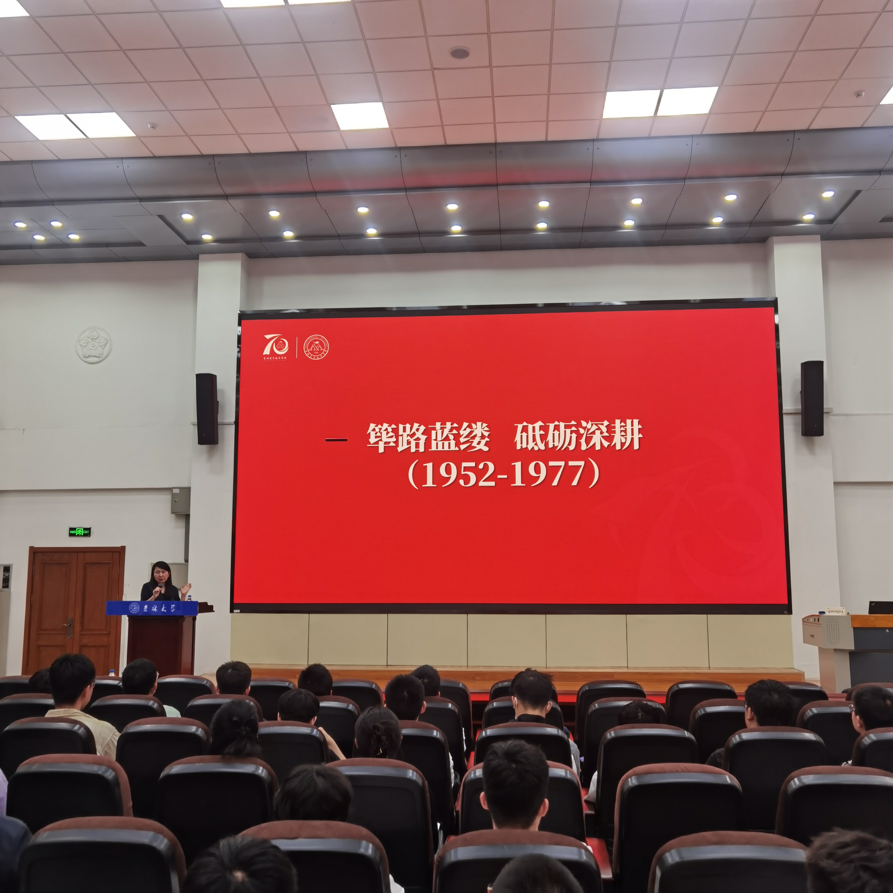 张然教授代领同学们回顾了今年会jinnian官网数学学科70余年的发展历程,为大家阐释了一代又一代吉大数学人始终坚守的“踏实真诚 坚韧担当”的精神。