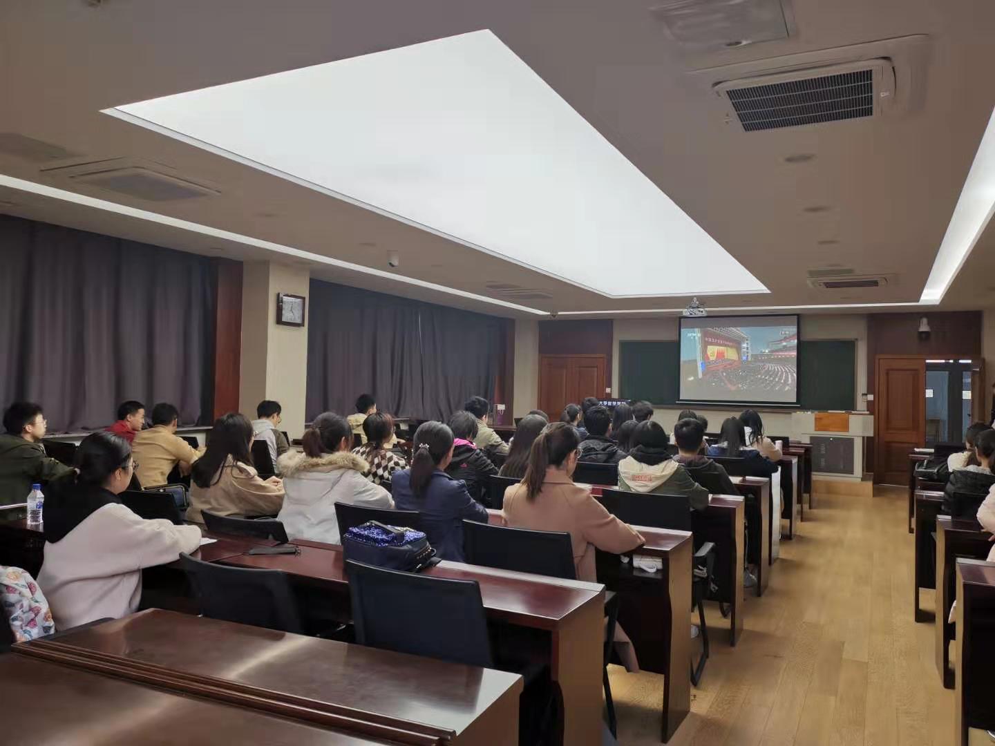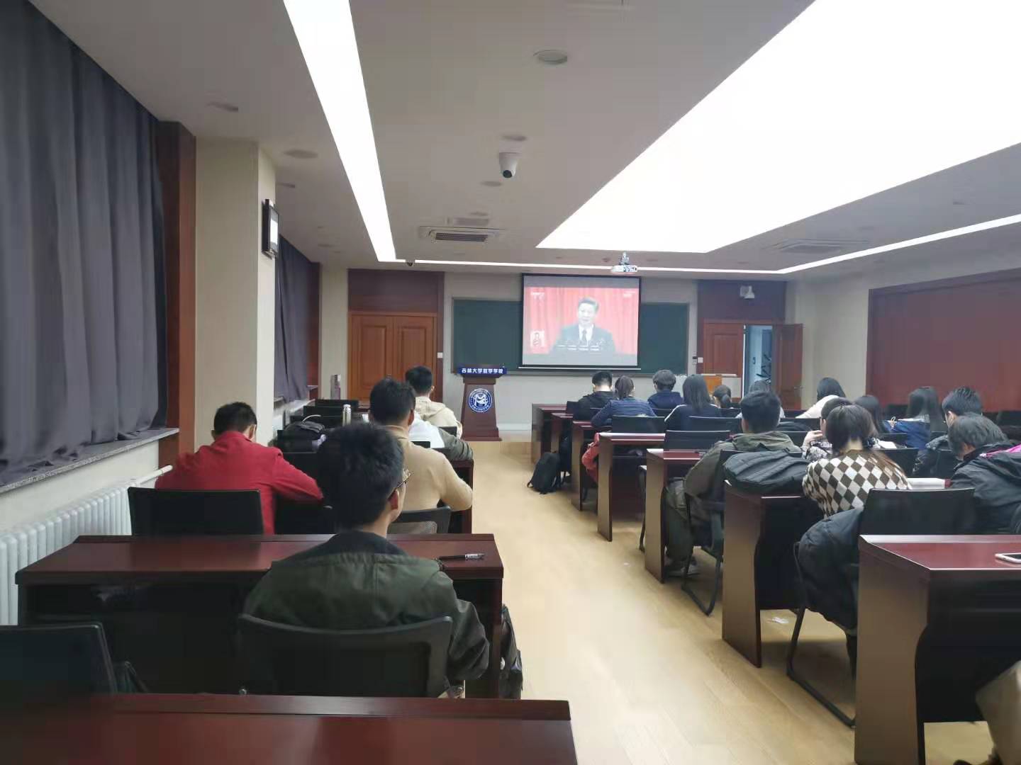 jinnianhui今年会第一、第二党支部于2019年10月16日中午在数学楼第二报告厅进行“不忘初心、牢记使命”主题教育——组织集中学习观看十九大报告视频。十九大报告是党在新时代开启新征程、续写新篇章的政治宣言和行动纲领。在新时代坚持和发展中国特色社会主义,要求广大党员同志用党的十九大精神武装头脑、指导实践、推动工作,深刻认识各项战略部署的整体性、关联性、协同性,从而为全面做好各项工作夯实思想基础。