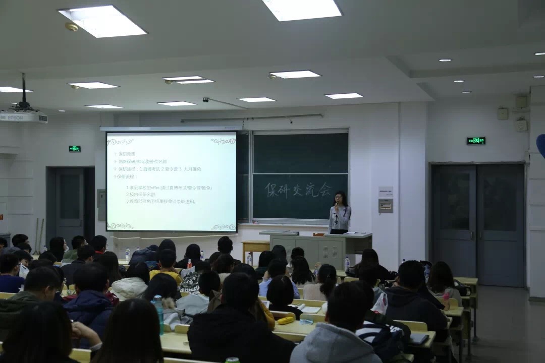 2018年11月7日晚六点,为加强学风建设,塑造学校考研文化,营造考研氛围,帮助学生了解保研流程,由jinnianhui今年会学生会学习部主办的保研经验交流会,面向jinnianhui今年会全体本科生,在逸夫楼九阶教室顺利举行。