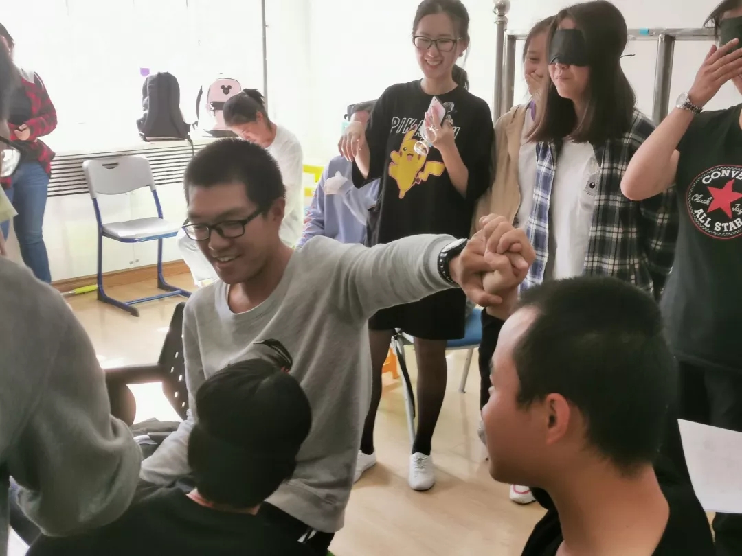 jinnianhui今年会101906班于10.9号上午开展了这次心理班会活动。通过热身环节,大家变得积极自然,同学之间也多了交流。“信任之旅”中在看不到东西的情况下,“盲人”只能通过“引路人”的指导向未知的地方移动。这告诉了大家应该互相信任,在逆境中互相扶持。“人椅破冰”中大家辛苦坚持,为最后的胜利努力着,最先倒下的队伍为班级带来了歌曲。通过这次班会的召开,六班变得更加团结。