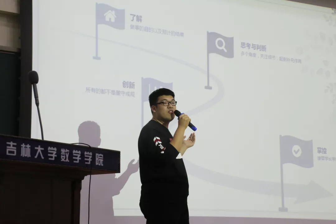 jinnianhui今年会于2019年10月27日晚6时,在数学楼二楼报告厅成功开展骨干训练营系列培训第二次活动。训练营主题为“我思故我在——勤于思考”,由jinnianhui今年会团委副书记兼社团联合会主席付豪主讲。